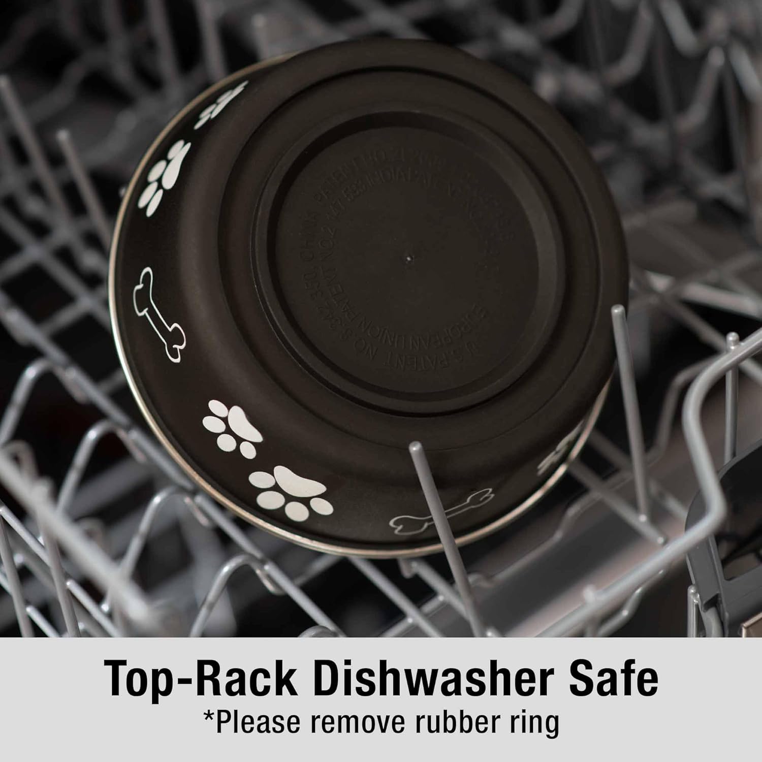 - Removable rubber base prevents skids, spill and noise
