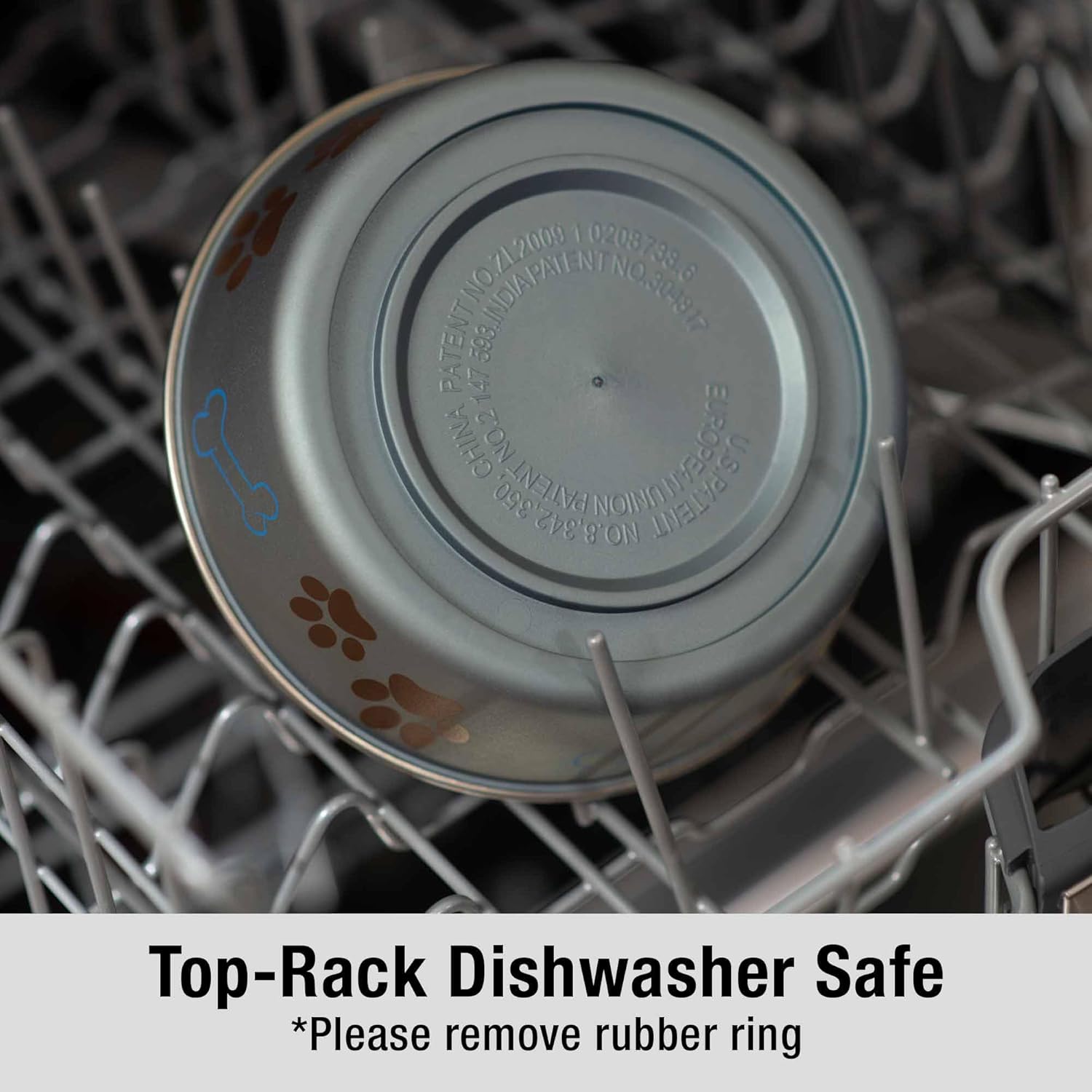 - REMOVEABLE RUBBER BASE - This feature prevents and ensures no spill water bowl for dogs. It’s perfect for puppy food and makes an excellent addition to your dog feeding station. Watch the bowl stand steady on your pet food mat, making it a great complement to your dog mat and other dog stuff.