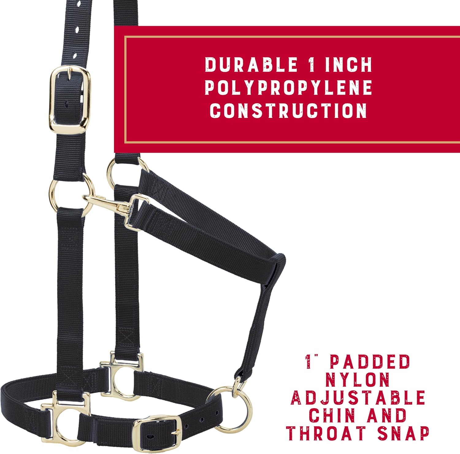 Weaver Leather Nylon Horse Halter, Padded and Adjustable, Chin and Throat Snap Hook Halters for Horses, Brass Plated Halters for Training