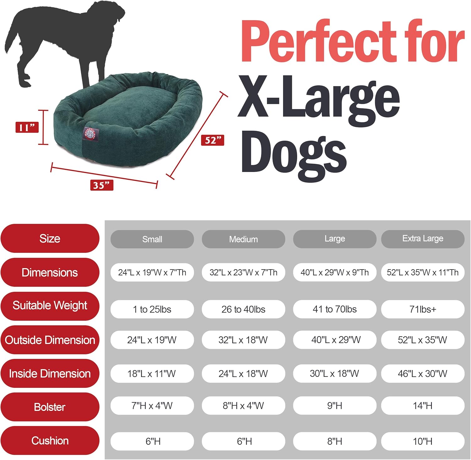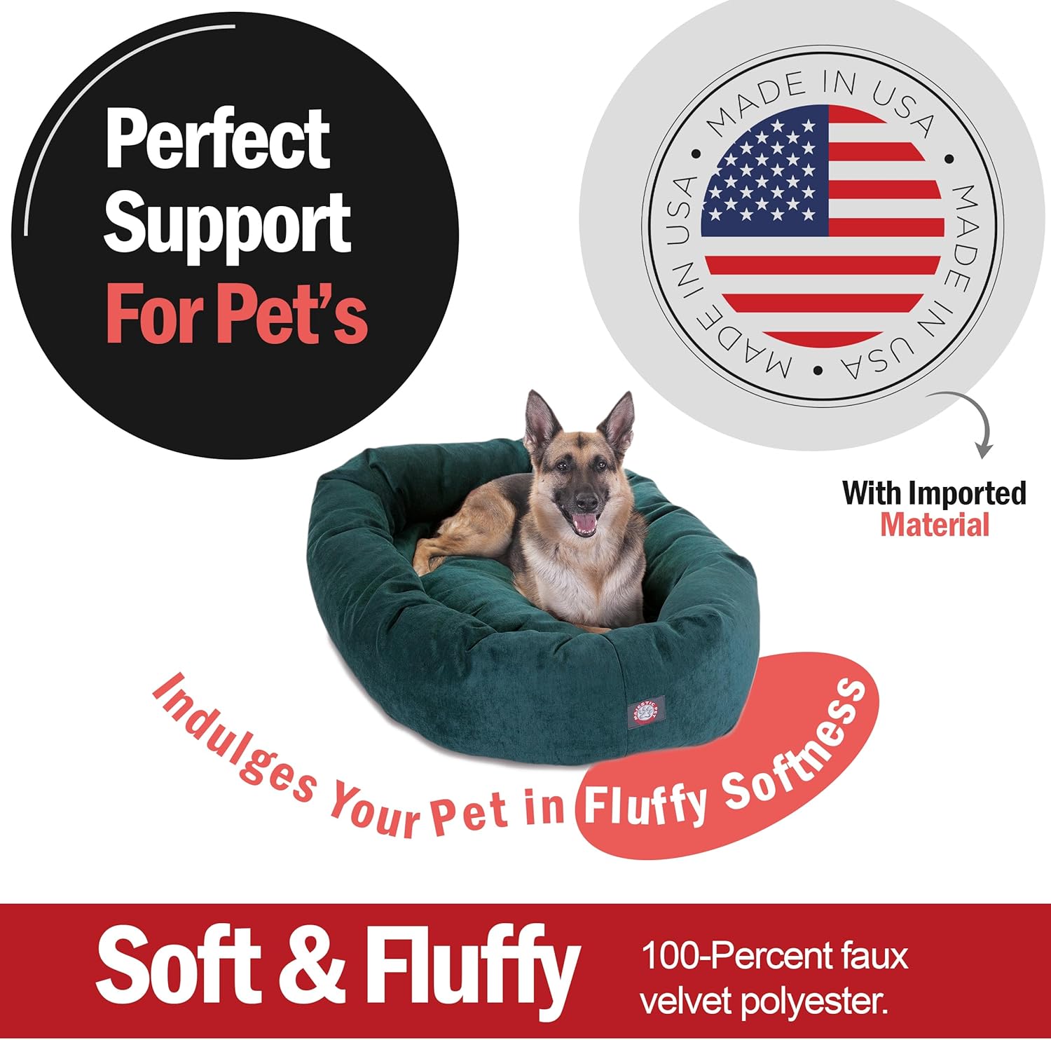 Majestic Pet 52 Inch Micro Velvet Calming Dog Bed Washable – Cozy Soft Round Dog Bed with Spine for Head Support - Fluffy Donut Dog Bed 52x35x11 (inch) – Round Pet Bed X- Large – Marine
