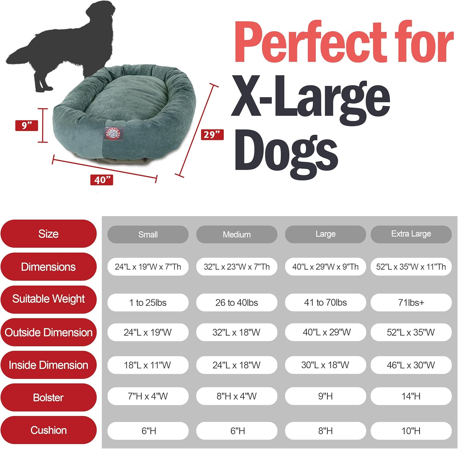 Majestic Pet 52 Inch Micro Velvet Calming Dog Bed Washable 52x35x11 (inch) – Cozy Soft Round Donut Dog Bed with Spine for Head Support - Pet Bed X- Large – Azure