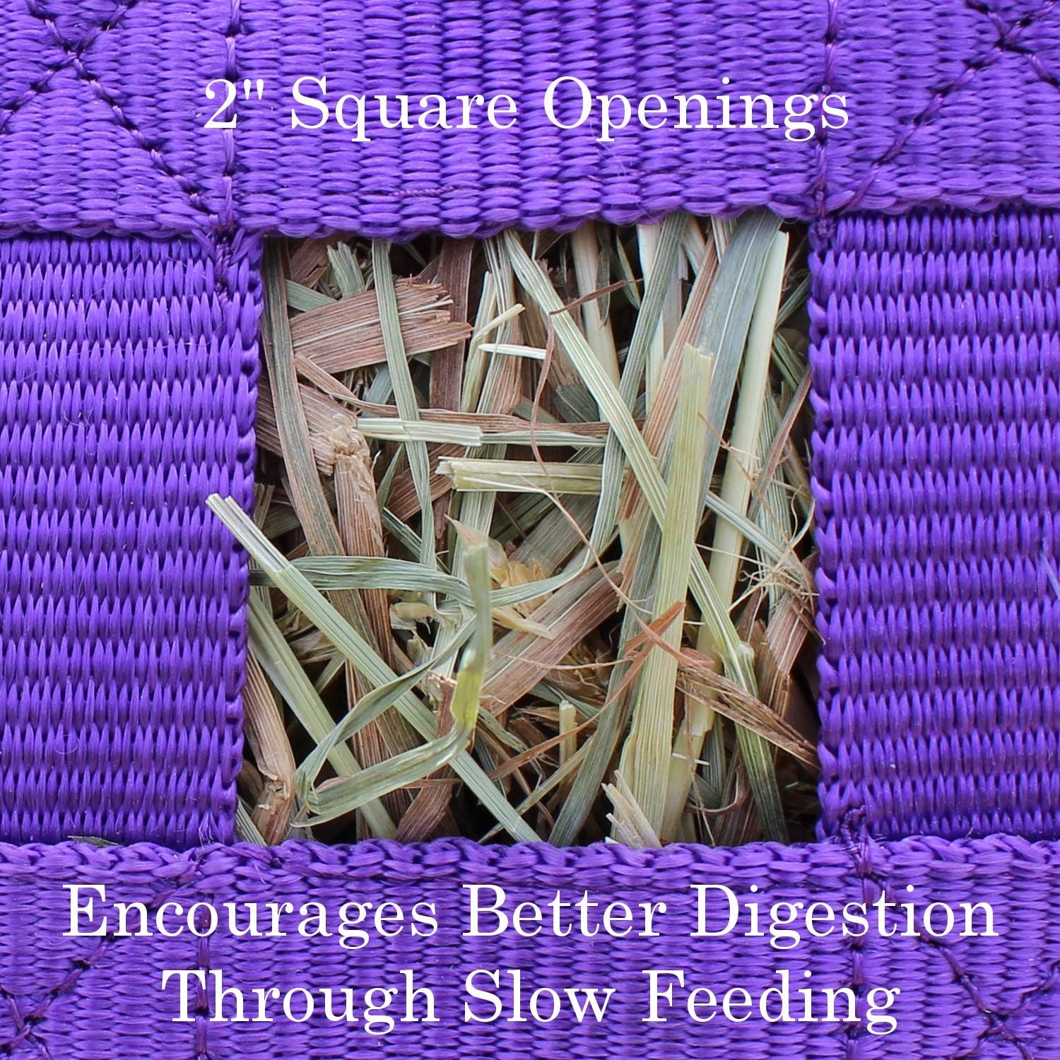 - HOLDS 2-3 FLAKES OF HAY - this 22x8x25" hay bag with 1.75" square openings holds approx. 2-3 flakes of Timothy, Orchard, Alfalfa, or any other type of hay. Our hay bags were designed to minimize frustration and can be stuffed in seconds.