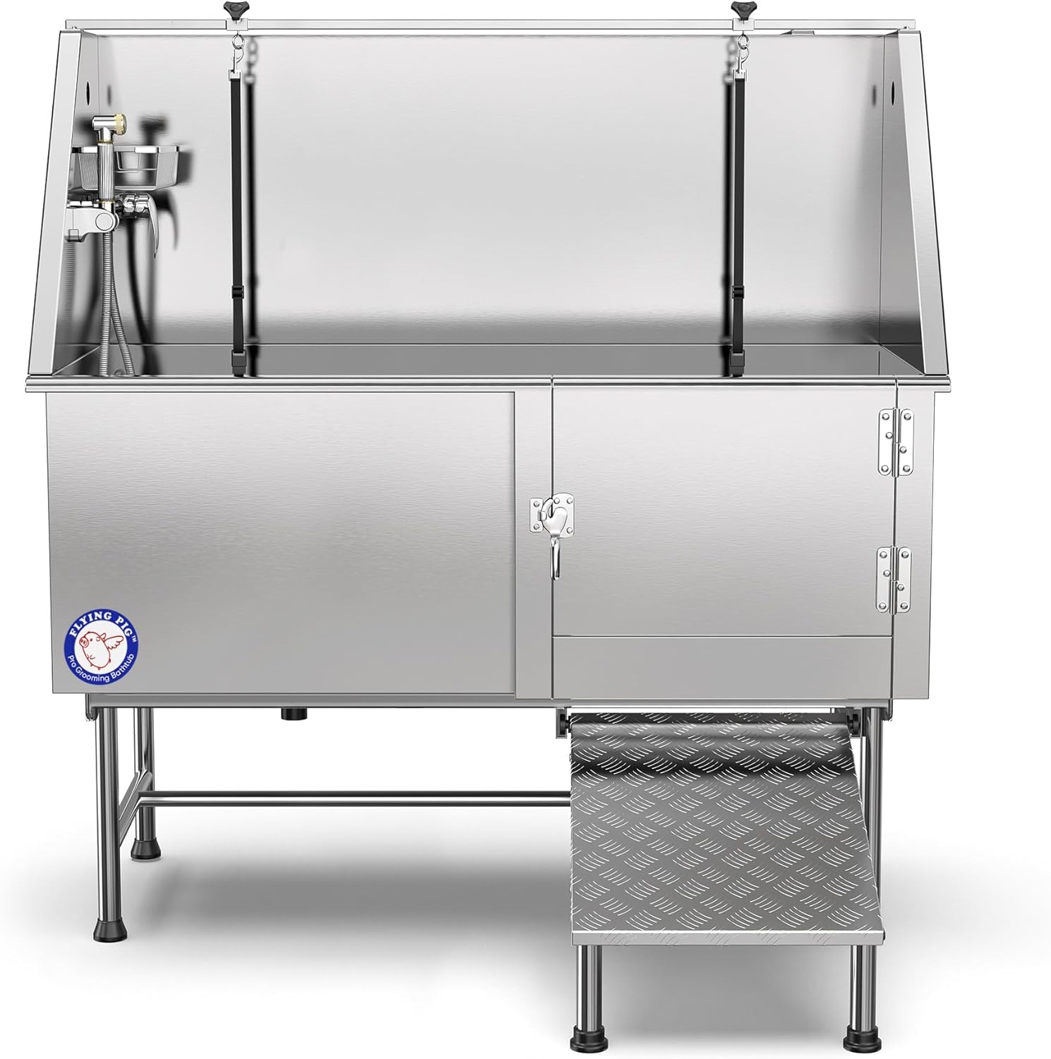 Flying Pig Grooming 62" Stainless Steel Pet Dog Bath Tub with Faucet (Right door/Left Drain), 62 x 27 x 58"