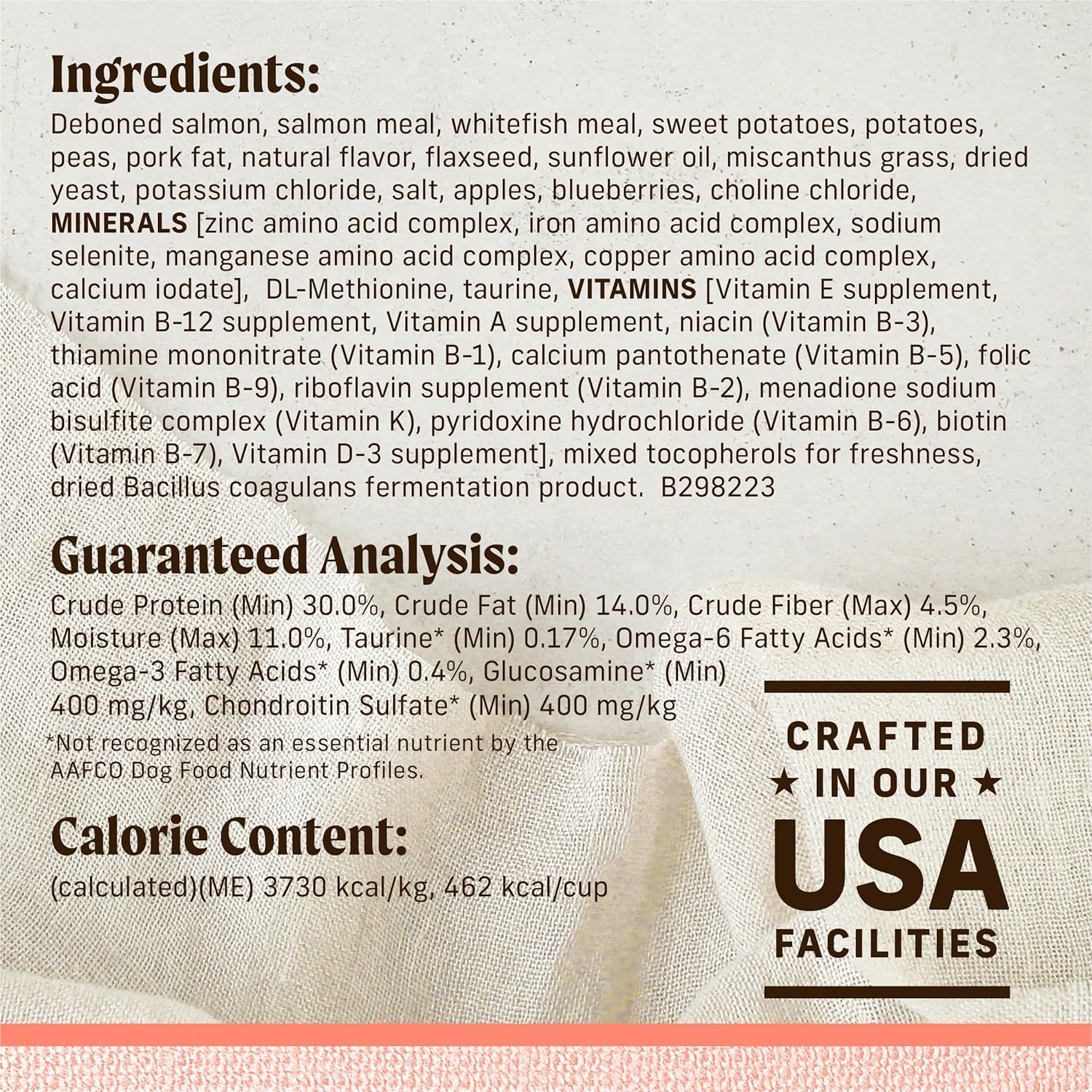 - Real deboned salmon is the first ingredient in this small breed natural with added vitamins, minerals and nutrients dog food. Crafted with premium ingredients to deliver a balanced diet to toy dogs