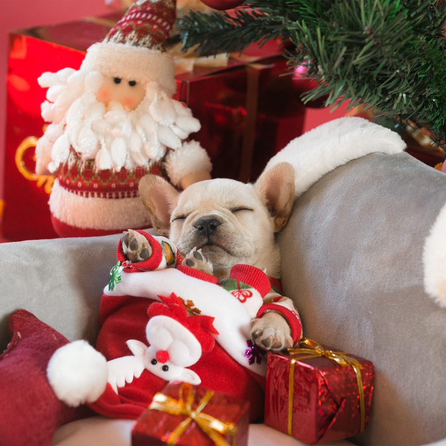 CuteBone Small Dogs Christmas Outfit Soft Puppy Onesies Pjs Dog Pajamas Pet Coat Cat Apparel Comfy Doggie Jumpsuit Bodysuit for All Seasons P17XS