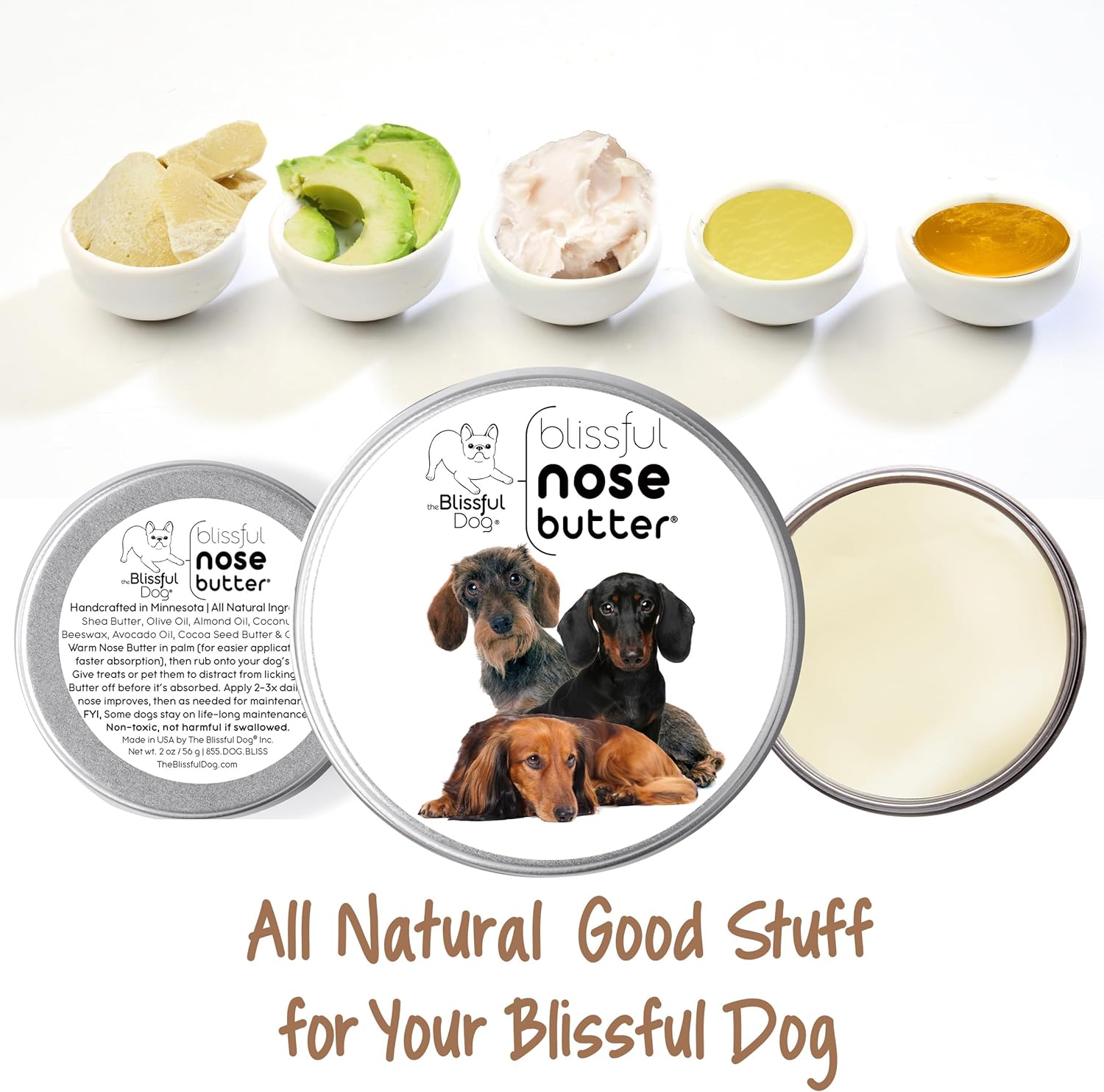 The Blissful Dog Daschund Nose Butter for Dry, Cracked Skin, Lick-Safe Dog Nose Balm with Moisturizing Shea Butter, Almond, Olive, and Essential Oils, Pet Supplies, Uncented, 2 oz.