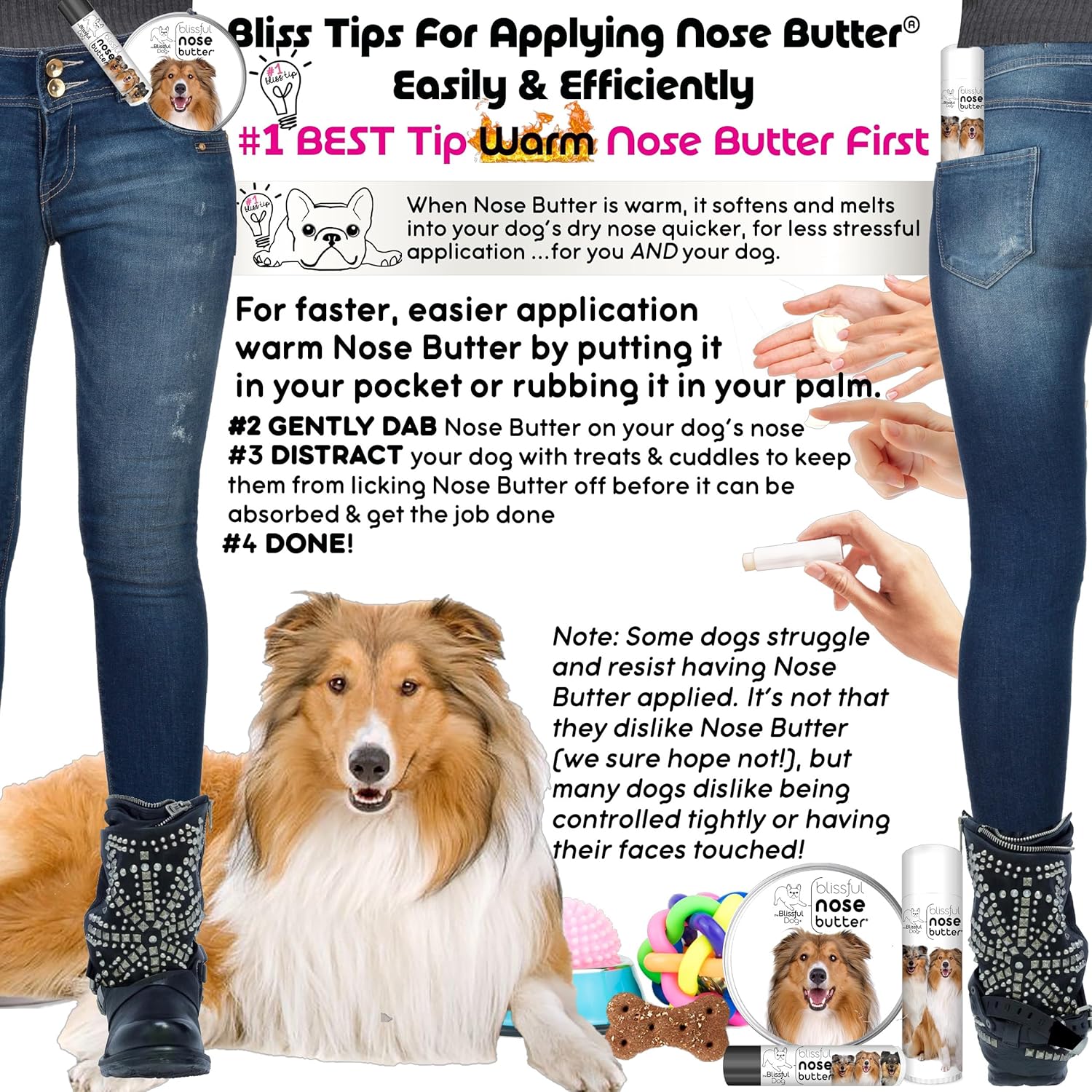- EASY, CLEAN APPLICATION: Just warm, dab, and gently massage the nose butter 2-3 times a day for the first 2-3 days or until their nose improves. The mess-free, non-greasy formula is handcrafted in the USA for dogs of all breeds and life stages.