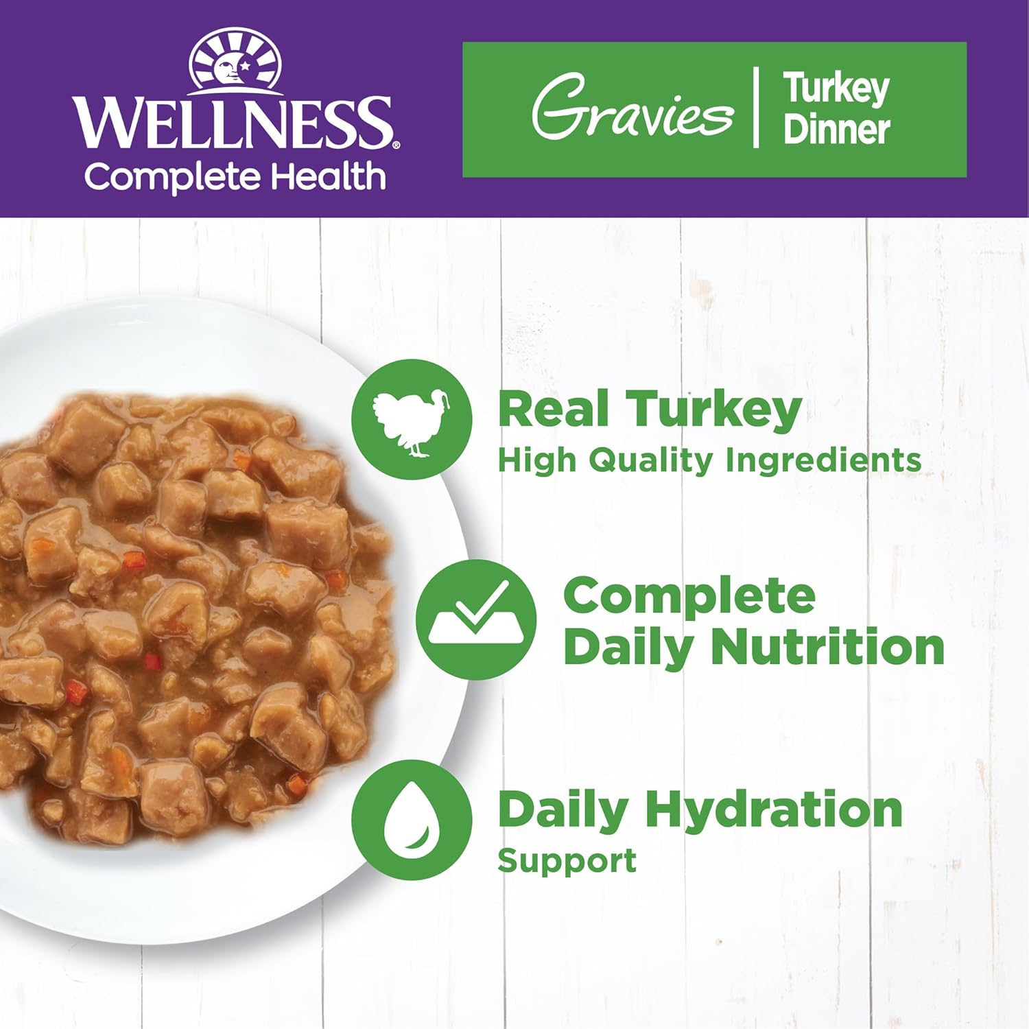 Wellness Complete Health Gravy Adult Wet Cat Food, Natural, Protein-Rich, Grain Free, 5.5 Ounce, 12 Pack, (Turkey Dinner)