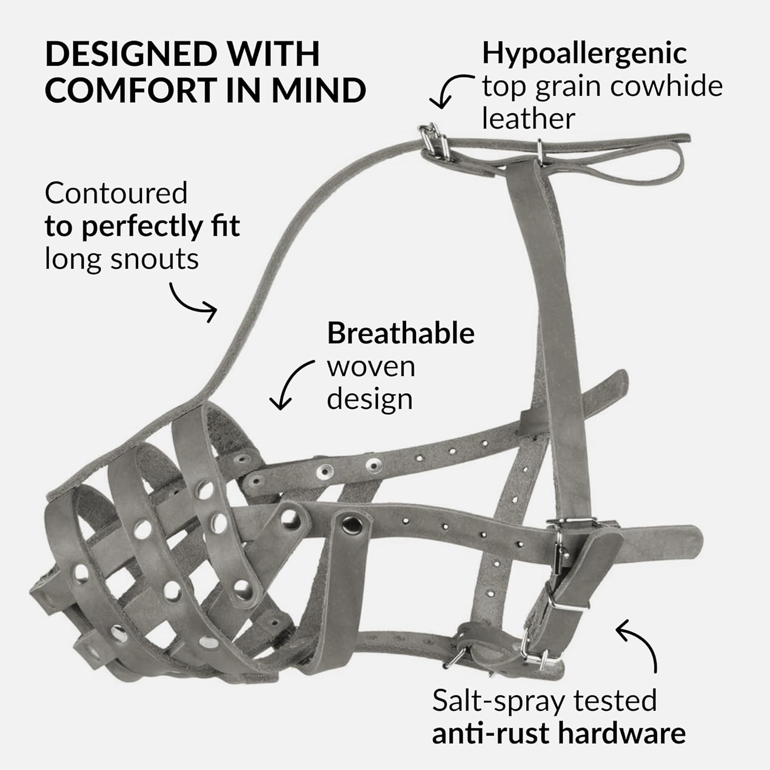 • COMFORTABLE: Our high-quality, handmade leather dog muzzle is skin-friendly. With a cross-weave design, this breathable, durable muzzle is soft on your dog’s fur because your pet’s comfort always comes first.