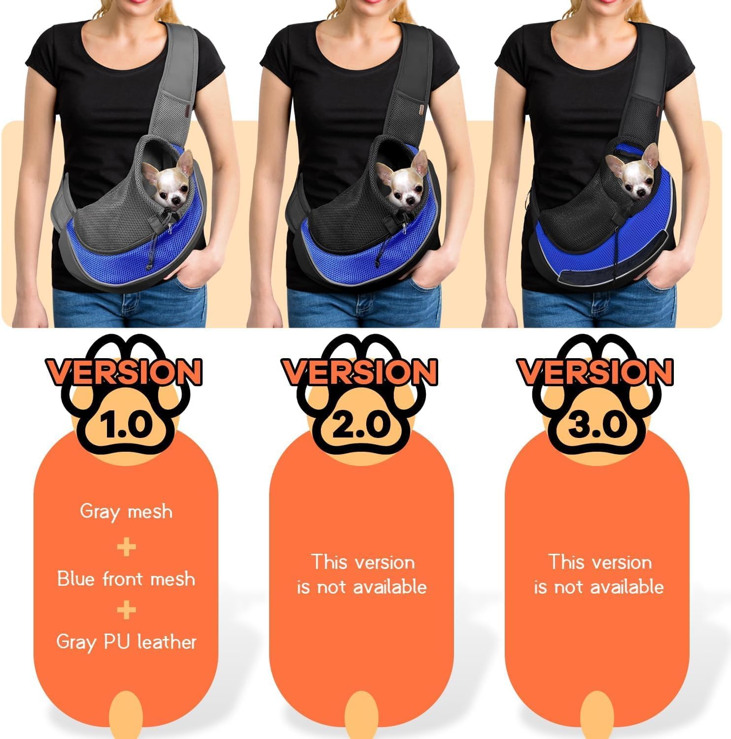 YUDODO Pet Sling Carrier for Small Dogs & Cats – Hands-Free Puppy Carrier with Safety Hook, Large Zipper Pocket, Soft Breathable Mesh, Adjustable Strap & Reflective Strip (Blue 1.0 M)