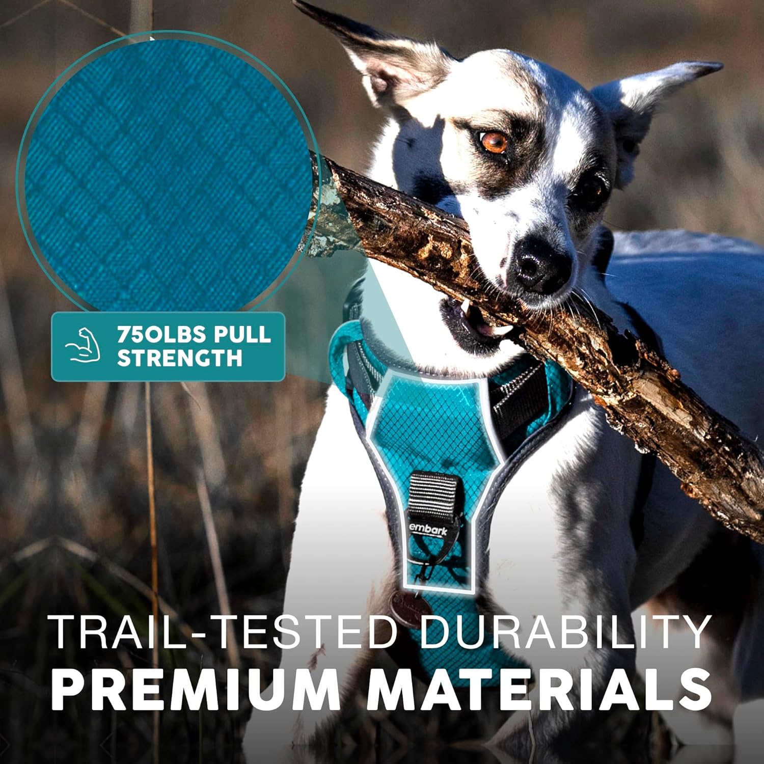 Embark Adventure Dog Harness, Reflective Trim No Pull Dog Harness Medium Sized Dogs - Military Grade Nylon, Front Clip with Gel Lined Handle.