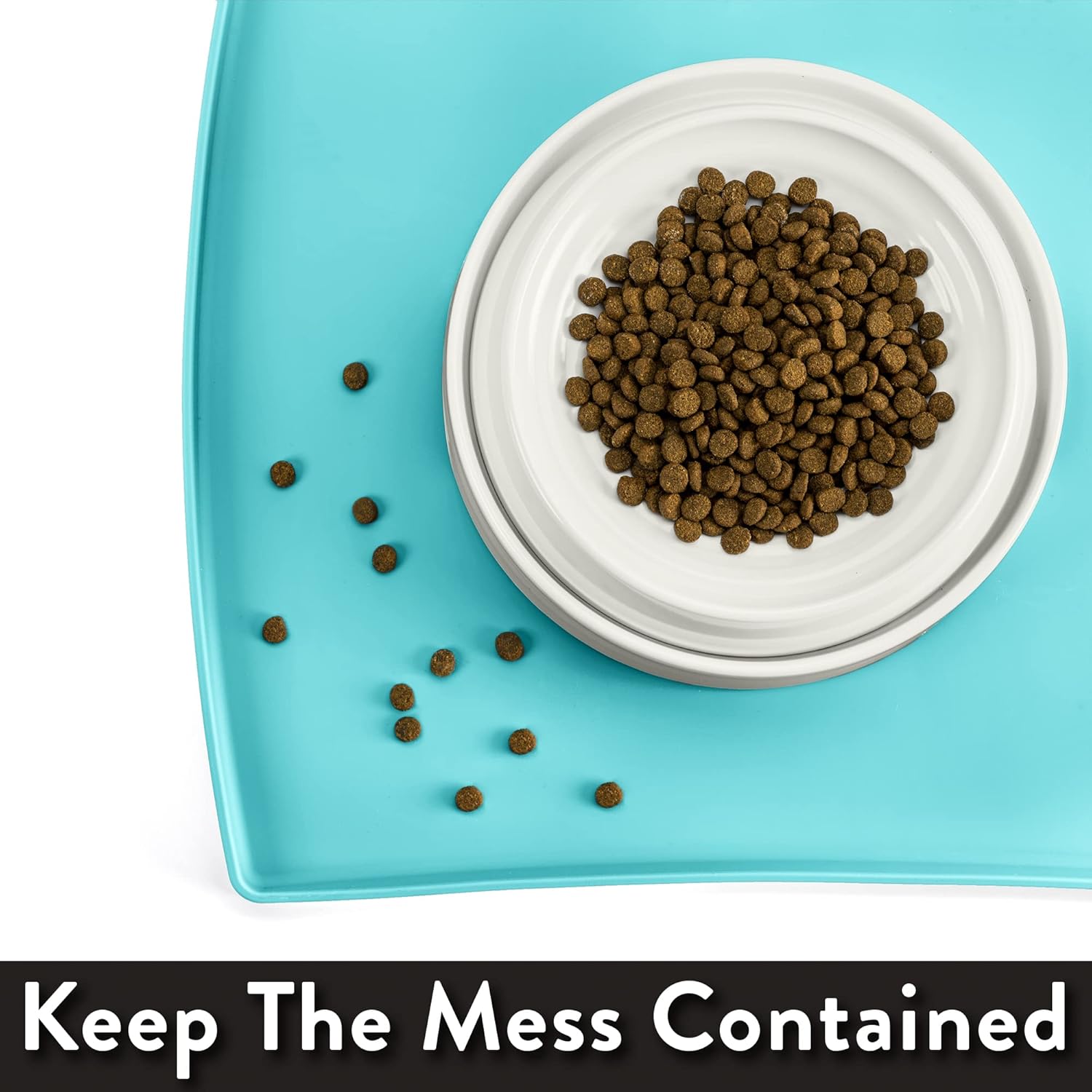 CatGuru Cat Food Mat, Small & Large Pet Feeding Mat, 100% Waterproof Cat Placemat for Food and Water, Non-Slip Silicone Mats for Cats Bowls or Water Fountain (Large, Aruba)