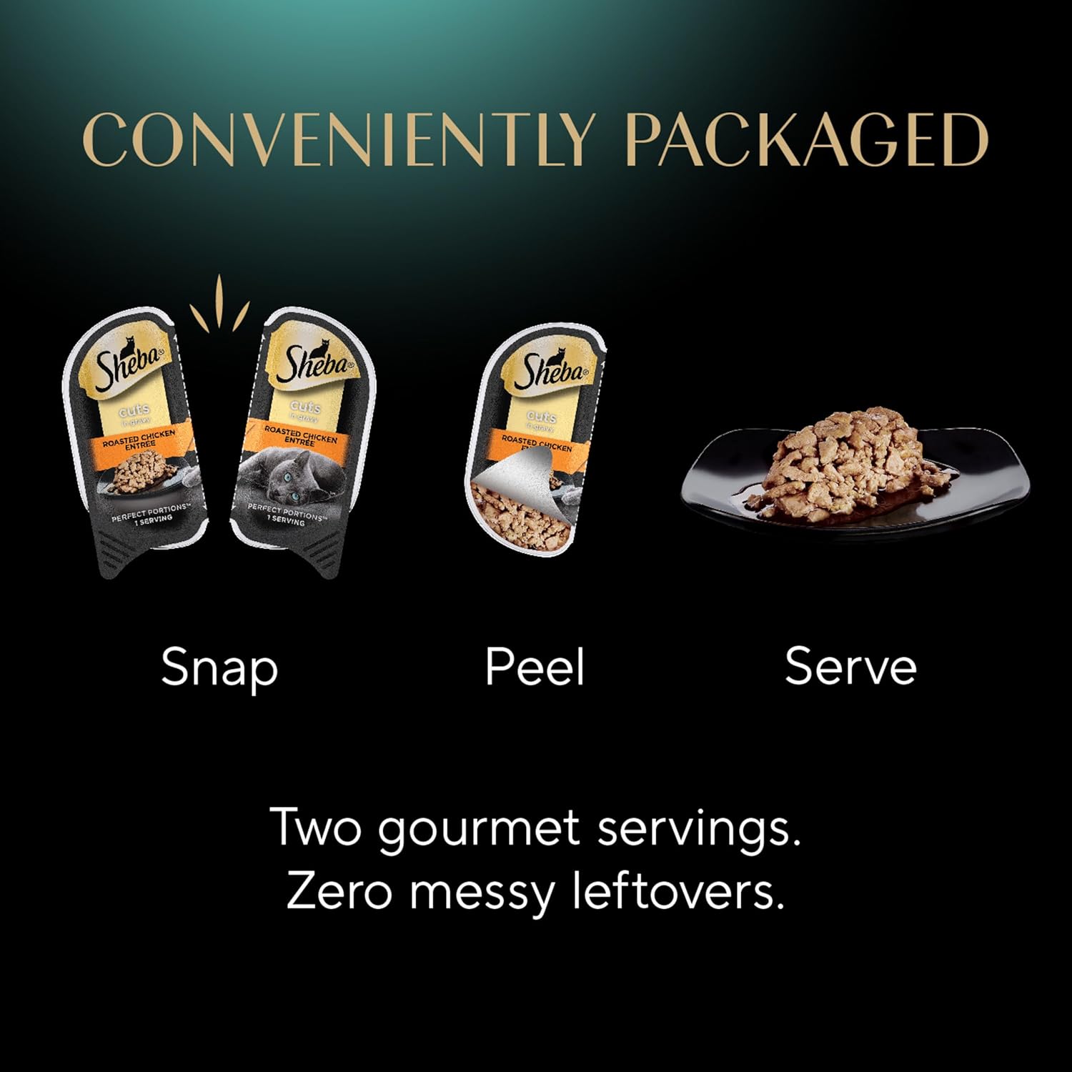 - A Fresh Meal With Every Peel: Just snap, peel, and serve Sheba Perfect Portions Wet Cat Food