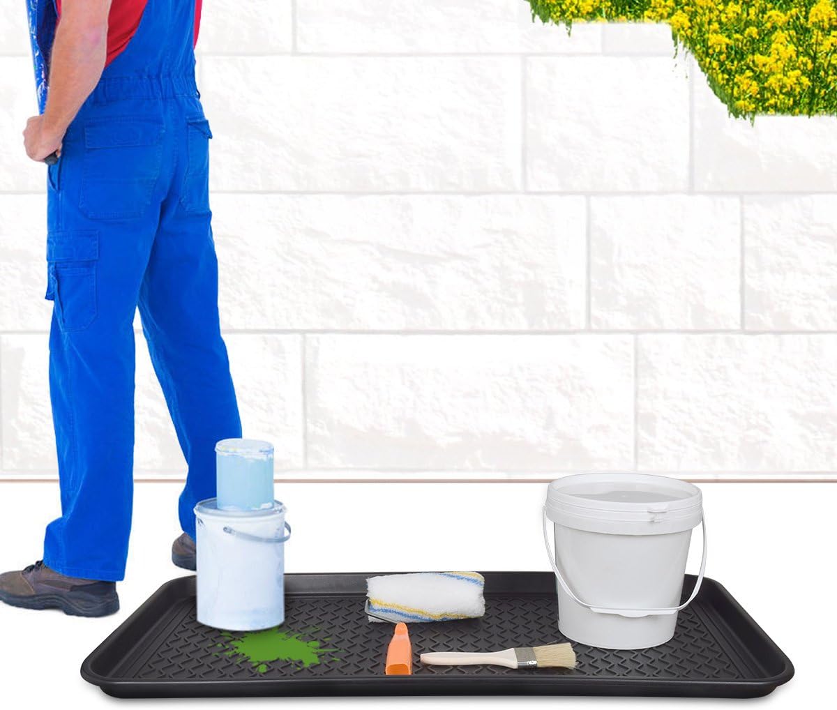 - ALL WEATHER USE- Raised 1.2โ inch edges serve as a spill containment tray to protect your hardwood and carpet floors from mud, paint, pet or liquid stains. This tray can be used both indoors and outside. Keep one in your entryway or mud room to catch water from rain or snow and every day dirt. You also can keep one on your porch or deck to keep dirt and water from ever coming in your home.