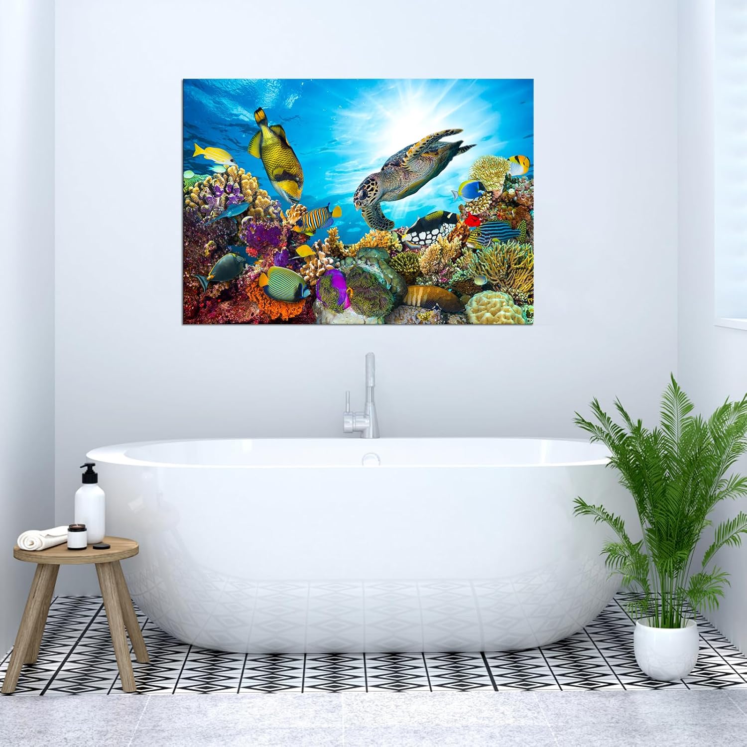 Large Wall Decor Colorful Sea Underwater World Coral Sea Turtle and Tropical Fish Painting Gallery Wrapped Ready to Hang Picture Artwork for Living Room Kids Nursery Room 28"x40"