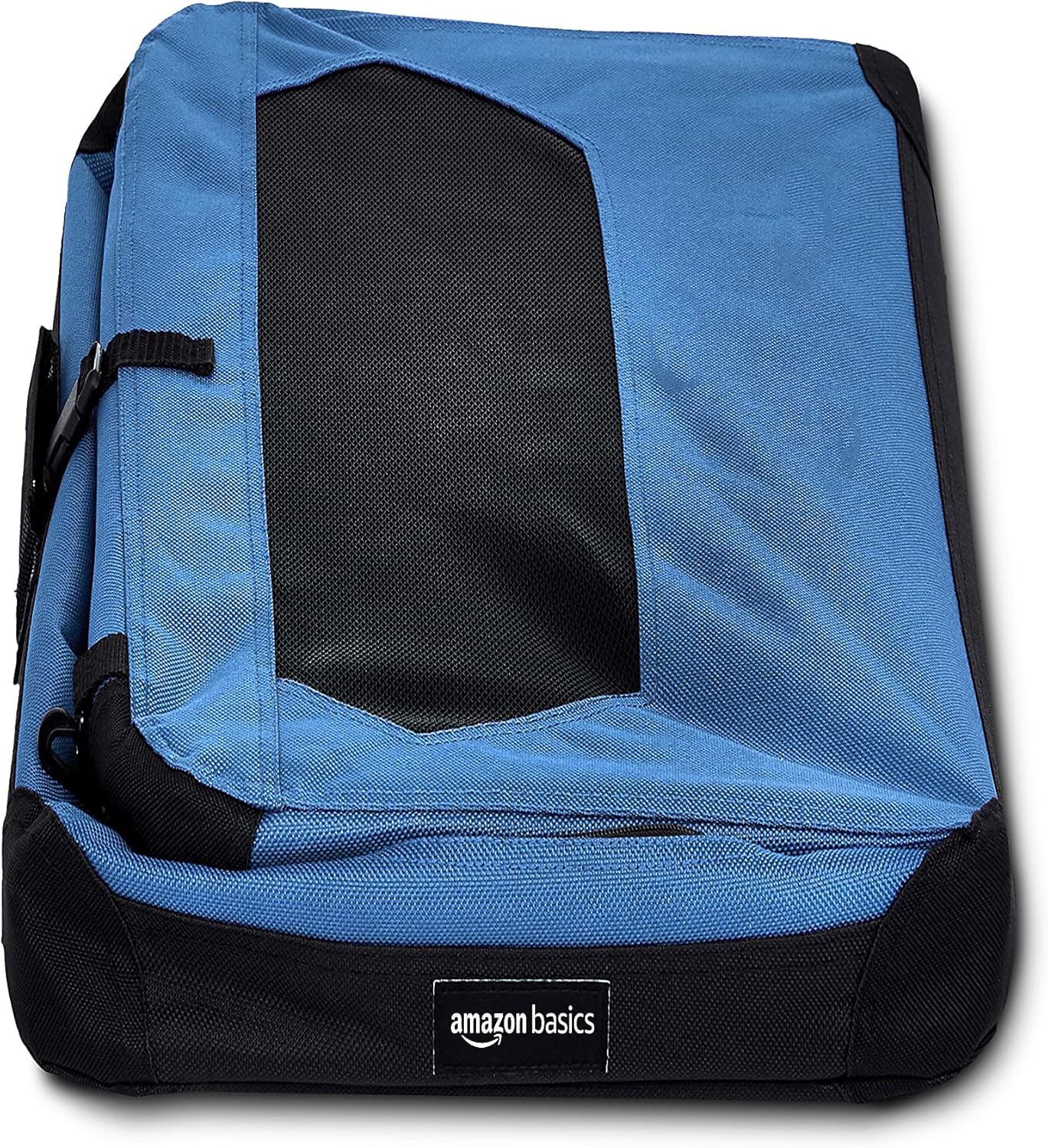 Amazon Basics Folding Portable Soft Pet Dog Crate Carrier Kennel, 26 x 18 x 18 inches, Blue