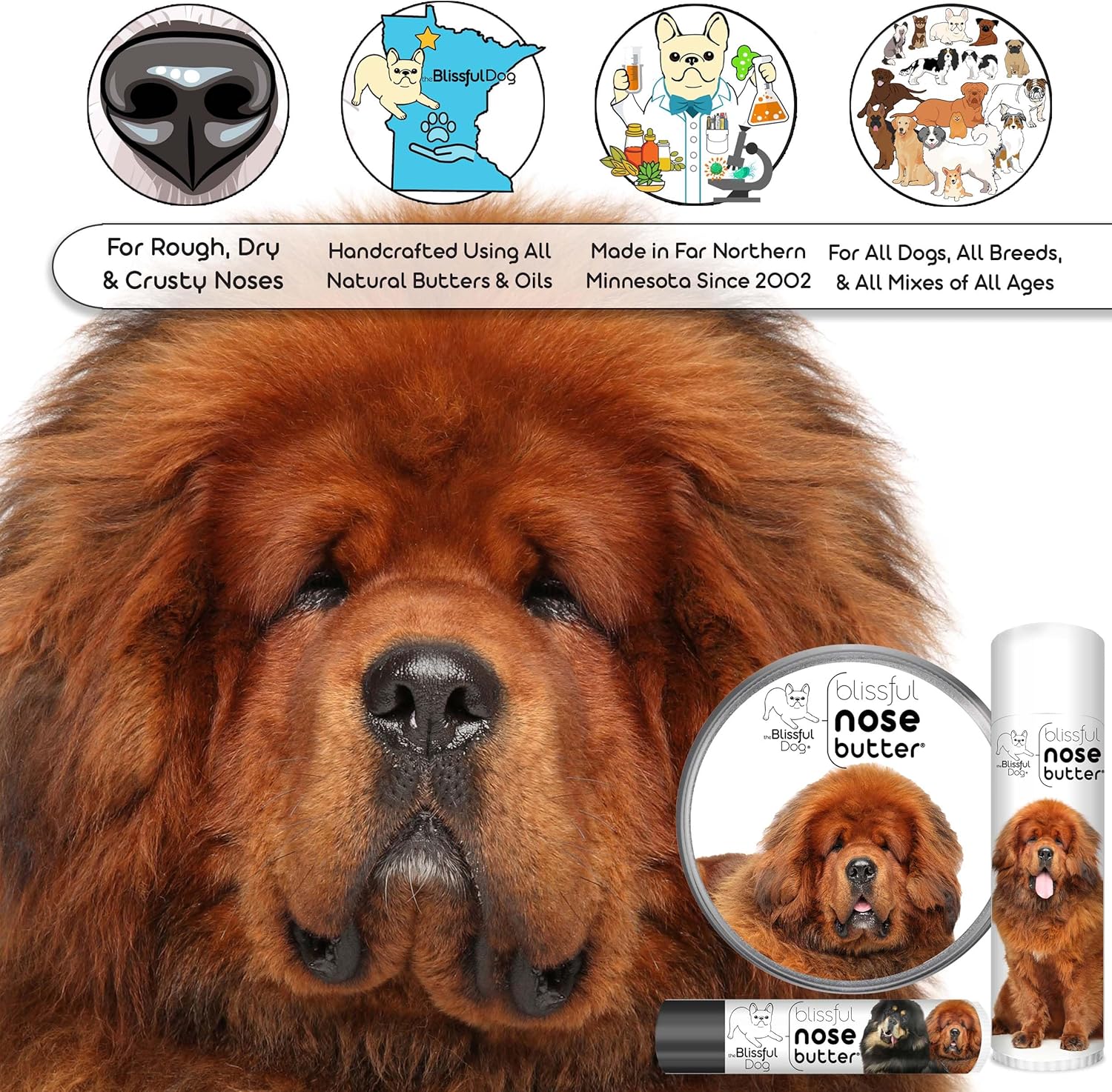 The Blissful Dog Tibetan Mastiff Unscented Nose Butter, 16oz