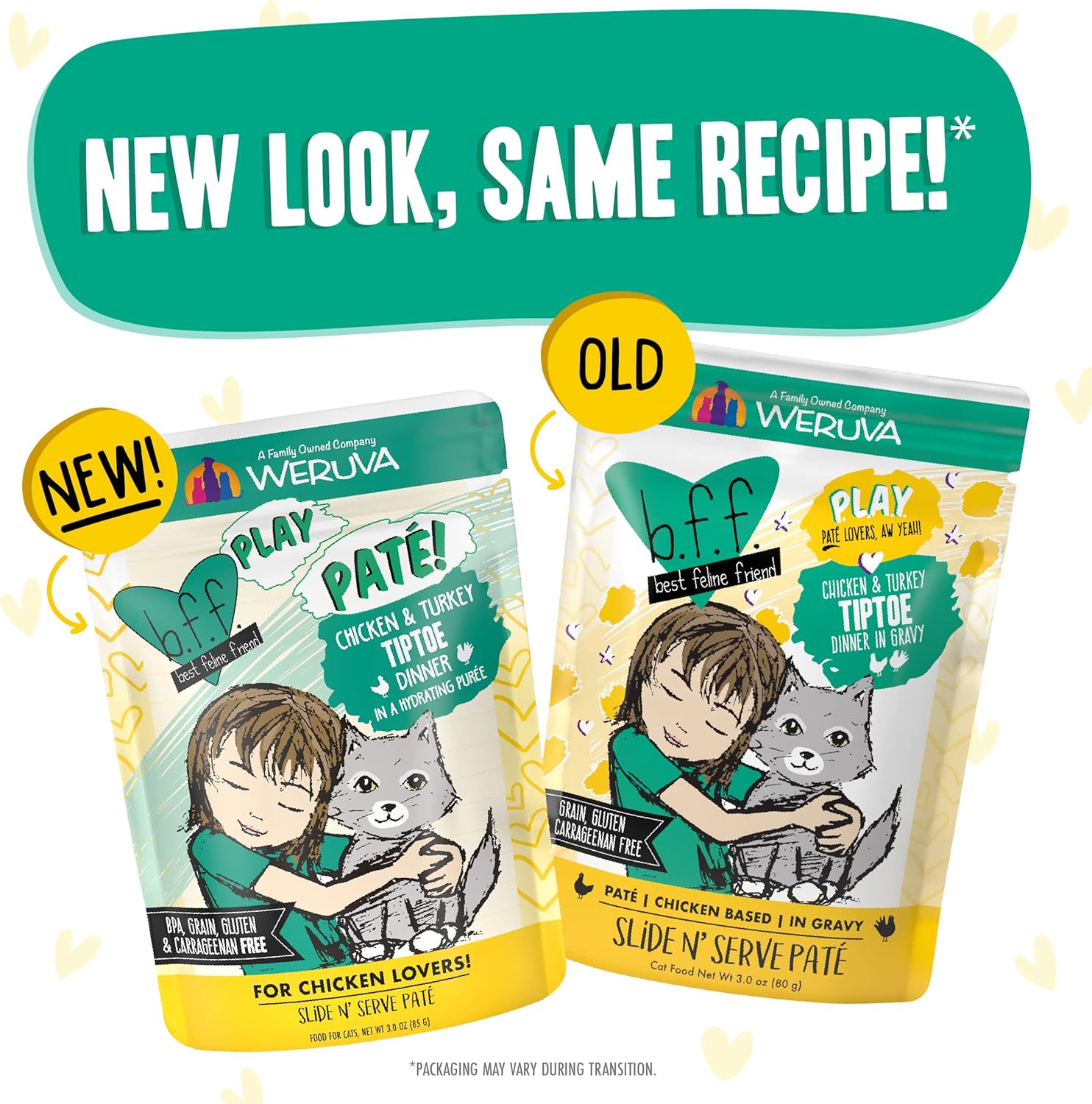B.F.F. PLAY - Best Feline Friend Paté Lovers, Aw Yeah!, Chicken & Turkey Tiptoe with Chicken & Turkey, 3oz Pouch (Pack of 12)