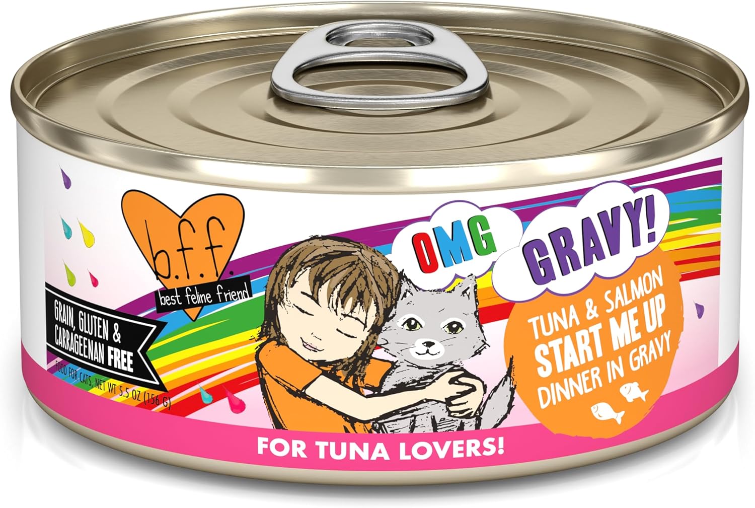 Weruva B.F.F. OMG - Best Feline Friend Oh My Gravy!, Tuna & Salmon Start Me Up with Tuna & Salmon, 5.5oz Can (Pack of 8)