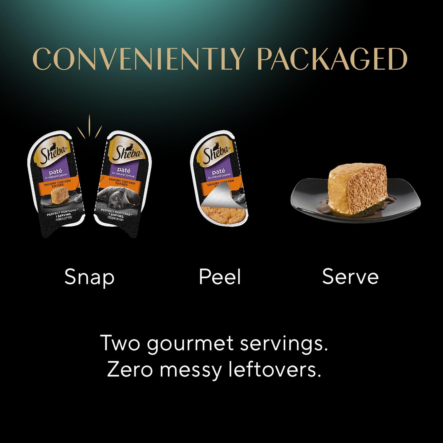 - A Fresh Meal With Every Peel: Just snap, peel, and serve Sheba Perfect Portions Wet Cat Food