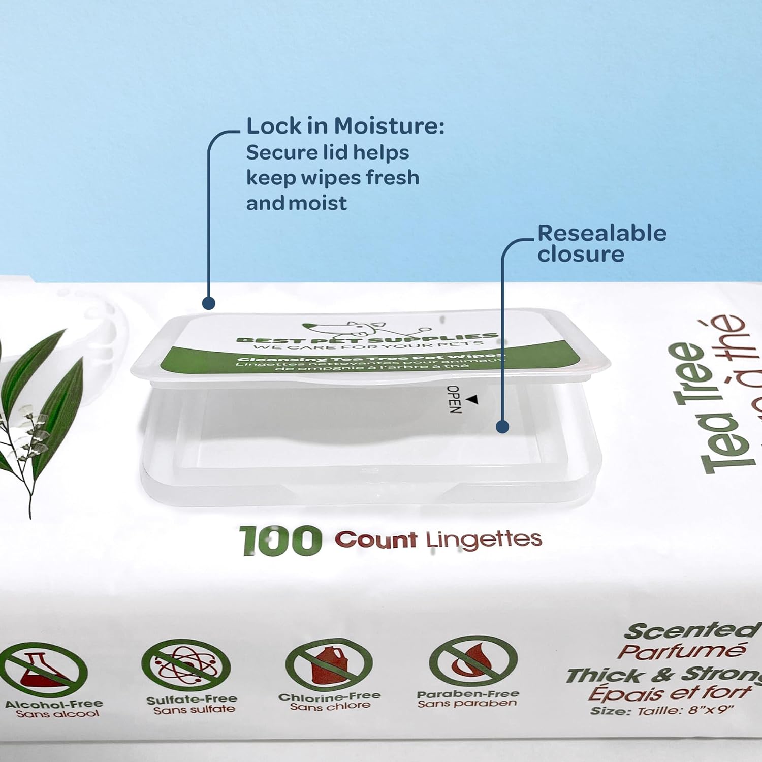 Best Pet Supplies Pet Grooming Wipes for Dogs & Cats,Deodorizer for Coats & Dry, Itchy, or Sensitive Skin, Clean Ears, Paws, Body, & Butt - Cleansing, Tea Tree, 400 Count