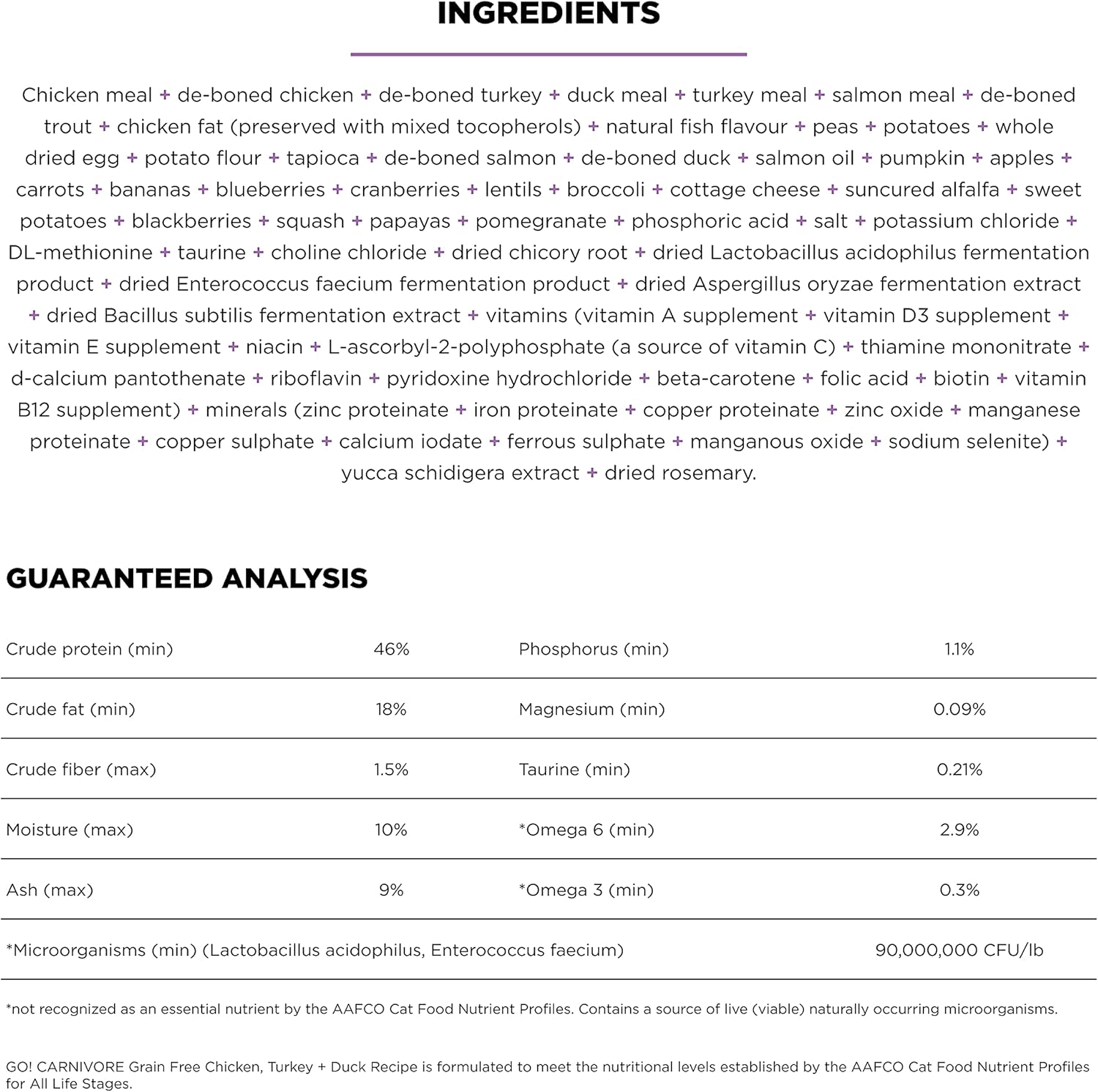 Go! Solutions Carnivore, Grain-Free, Protein Rich Dry Cat Food, Chicken, Turkey and Duck Recipe, 8 lb Bag