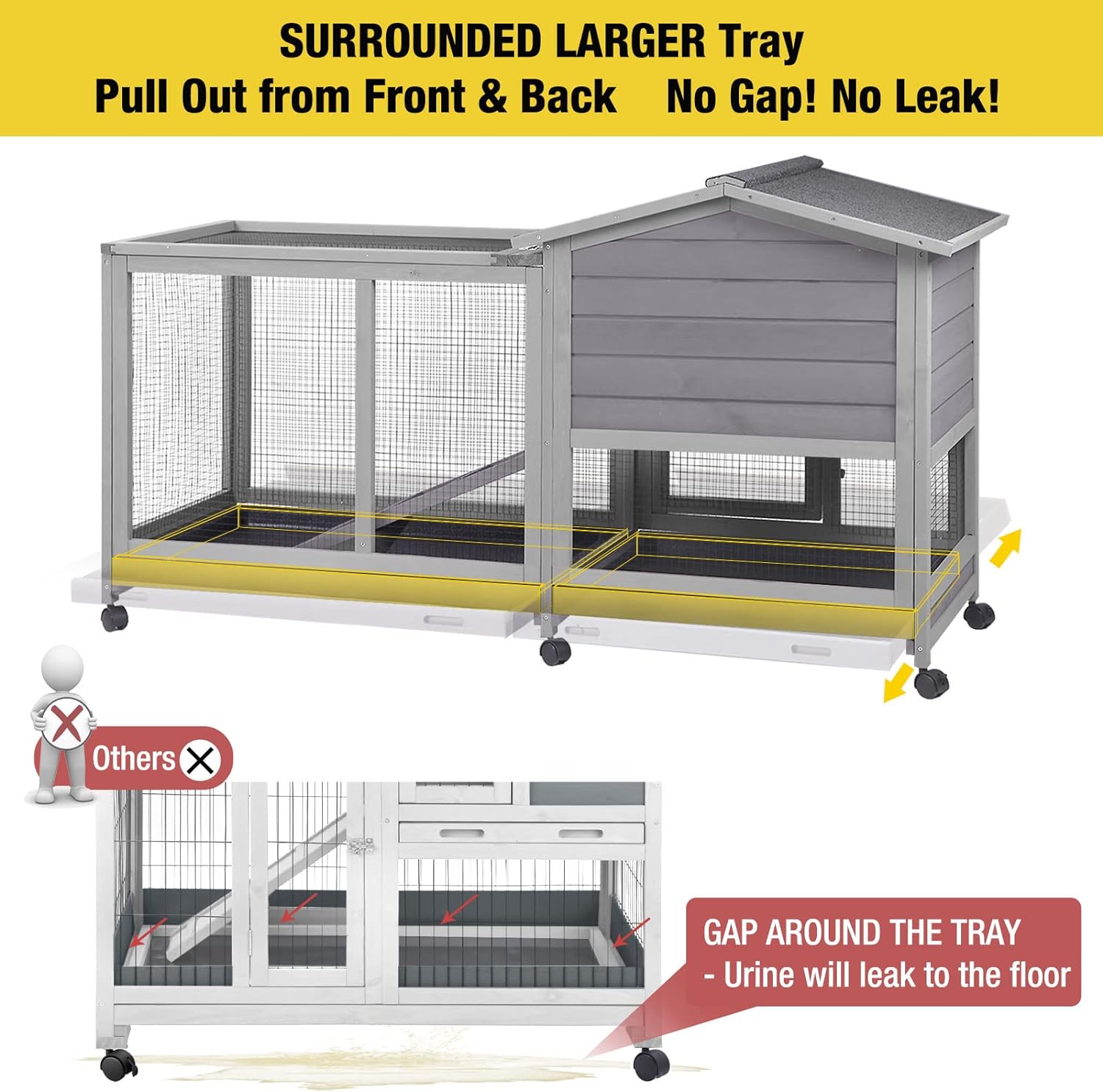- Rabbit hutch with 3 DEEP removable pull out tray from front and back! NOT LEAK! Better plastic quality, easy to clean !