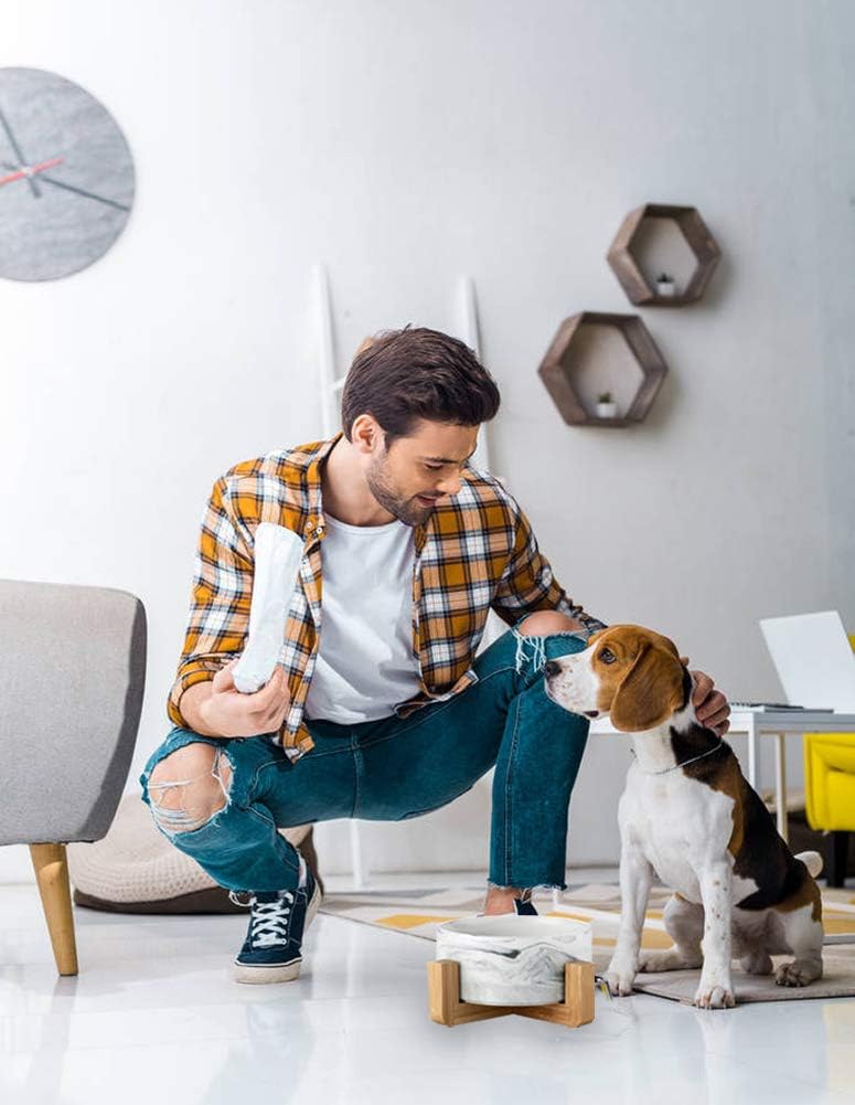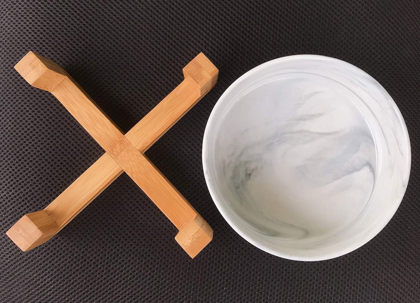 - 【CERAMIC MATERIAL & DISHWASHER SAFE】Pet bowl is made of Ceramic with bamboo stand to prevents bowls from sliding while your pet eats. Dishwasher-safe for easy cleaning. But the bamboo stand doesn't like to run into the dishwasher.