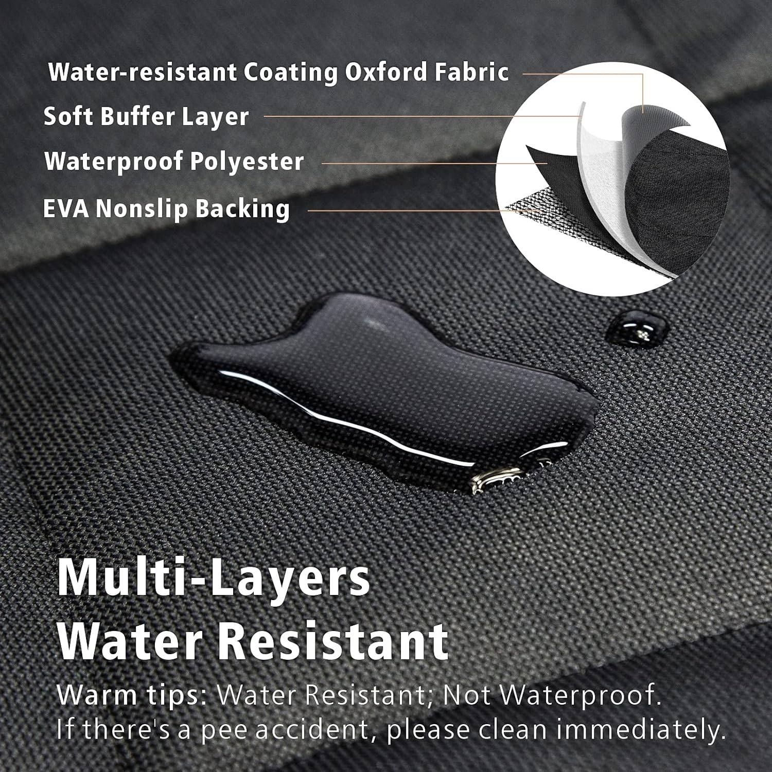 - Water Resistant Cargo Liner: 4 water-resistant layers quilted, wear-proof 600D oxford fabric protect your car seat from pet dander, hair, spills, odors, mud and water; Easy to clean just by wiping away dirt or vacuuming. Tips: If there's a pee accident, please clean immediately.