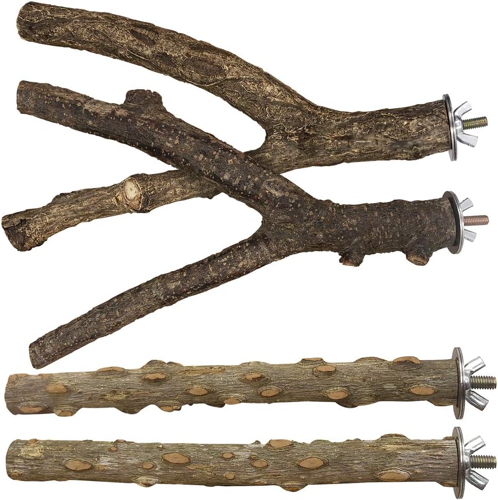 Bird Perch 4 PCS Natural Wood Stand Parakeet Toys Bird Cage Accessories for Parrots Conure Supplies Budgie Platform