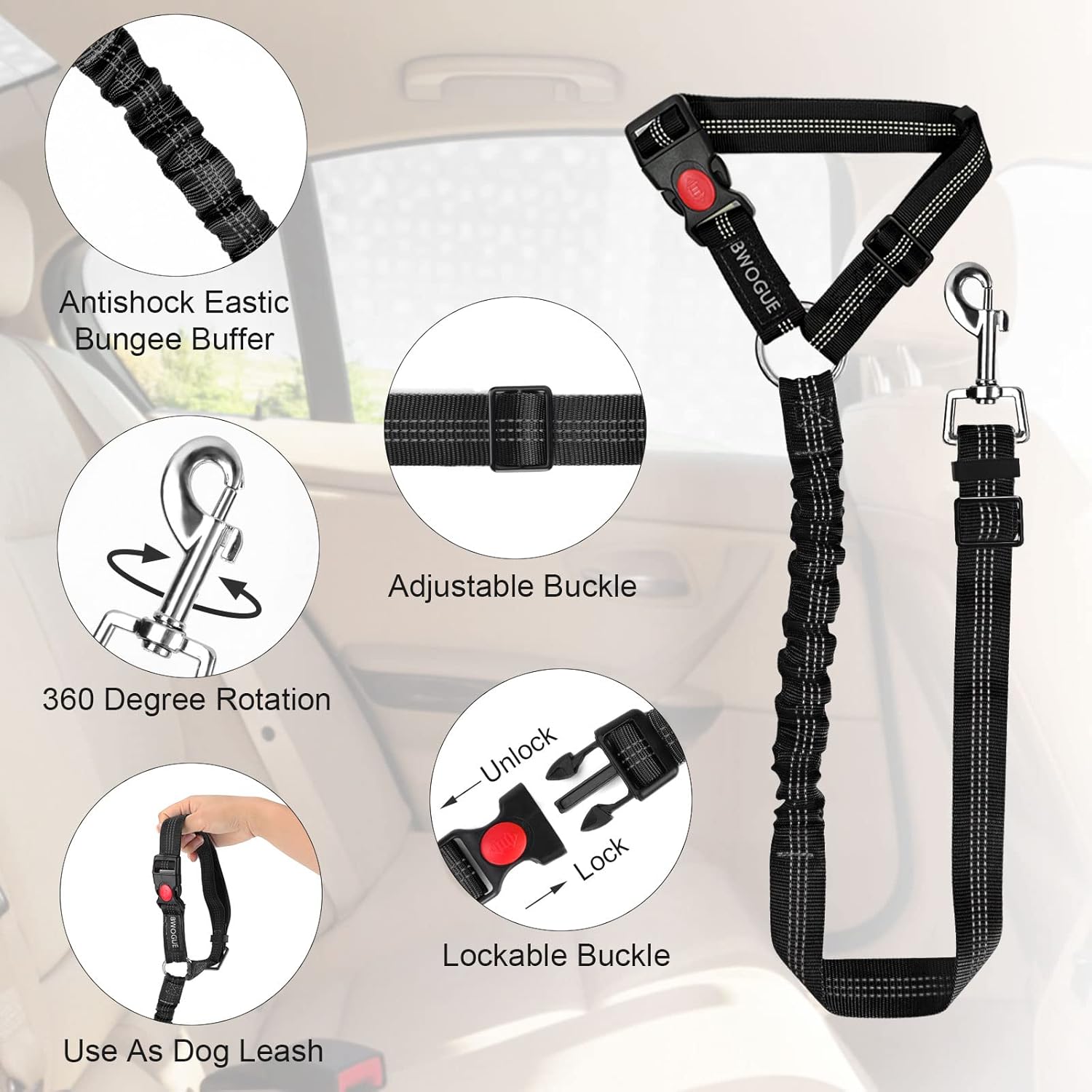 - HIGH QUALITY: Made of high quality nylon fabric to ensure safety, features the solid zinc alloy swivel snap,elastic bungee and quality buckles, The reflective stitching design makes it great for night time use. The elastic bungee helps dog prevent jerking with sudden movement. the pet car seat belt ensures the most safest traveling for your pet, and provides a most relaxing driving experience for you.