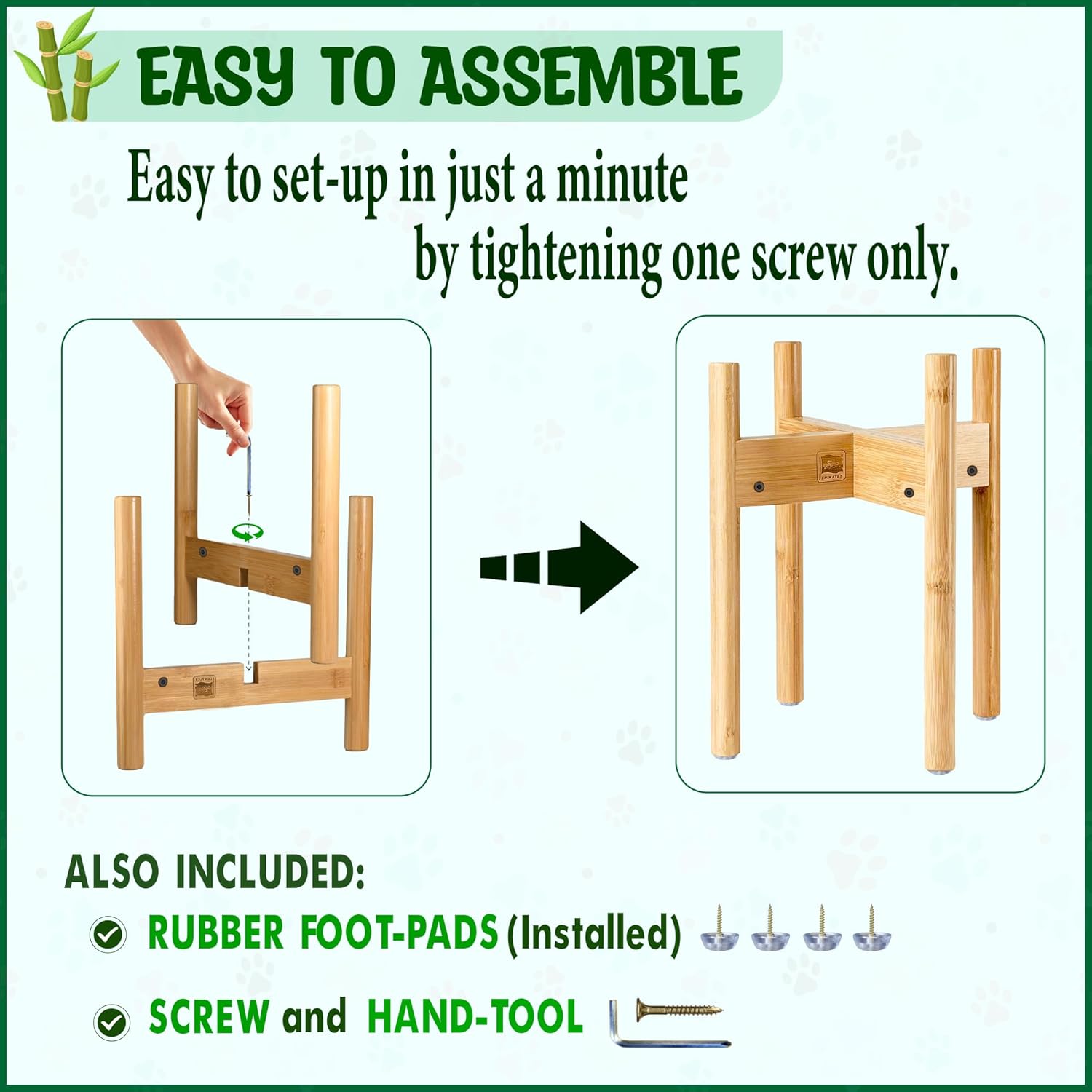 - Raises Bowl to Around 14" High β When a bowl is placed on the bamboo stand, the height of the elevated bowl will become approximately 14 inches tall from ground to bowl rim. Please see photos for measurement and set up. [Bowls shown in the photos are sold separately.]