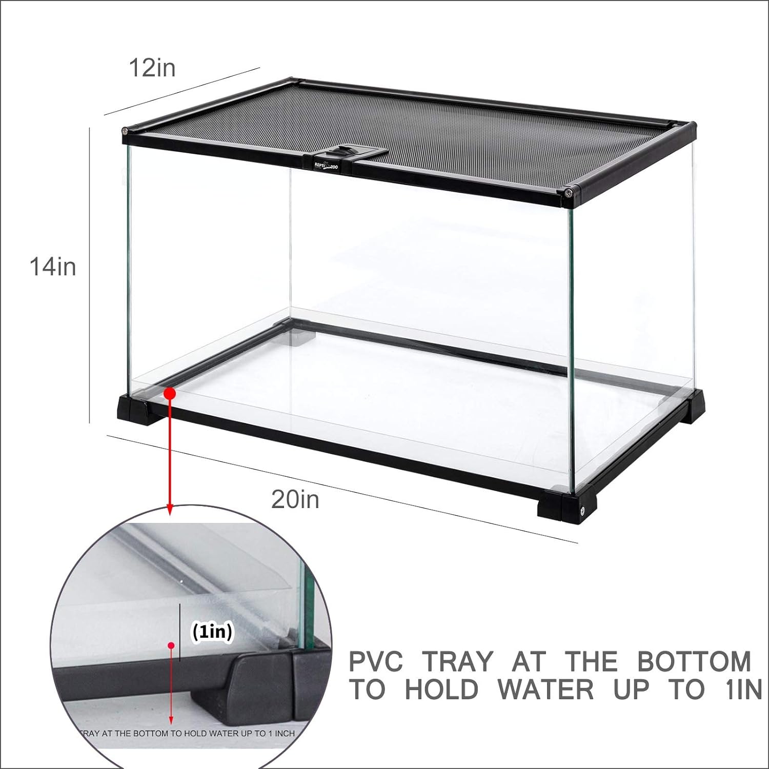 - ăPVC TrayăWith a transparent PVC tray in the bottom for keeping substrates wet. So this medium terrarium 20" X 12" X 14" can be used as gecko tank, hermit crab tank, small pets terrarium and more.