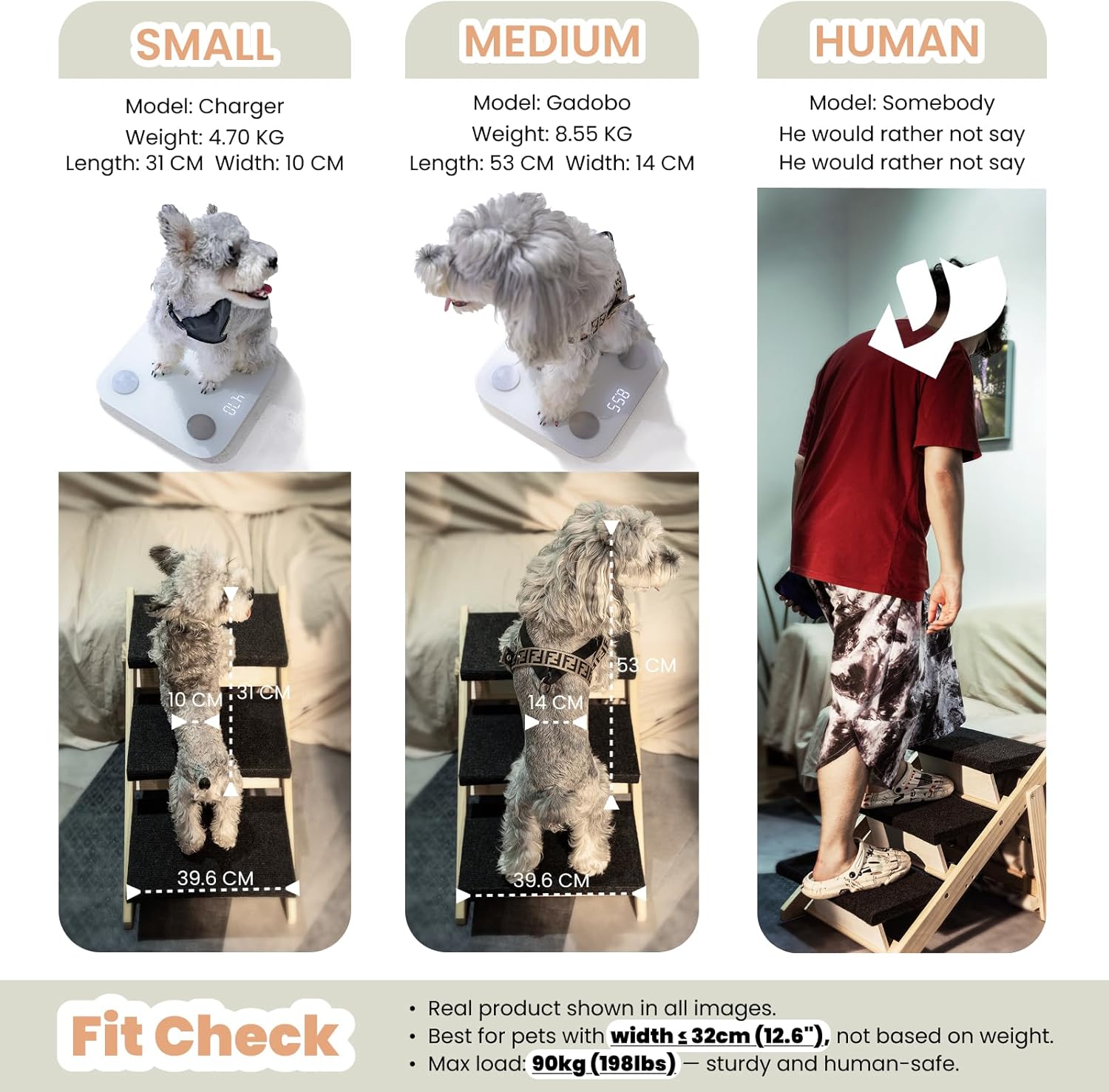 MEWANG Wood Pet Stairs & Ramp for Small/Medium Dogs and Cats, Aging Pets – 3-in-1 Foldable, Portable, Non-Slip Pet Ladder for Tall Beds, Couches,Cars–Holds Up to 220 lbs (17.3" L x 17.2" W x 13.0" H)
