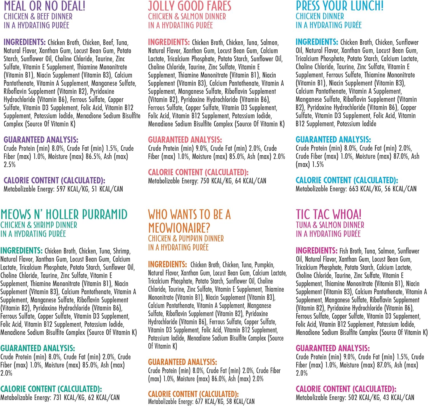 - The Mix and Match Game Variety Pack. Pick a new pate, everyday. Includes all six Weruva canned pate cat food recipes, three of each