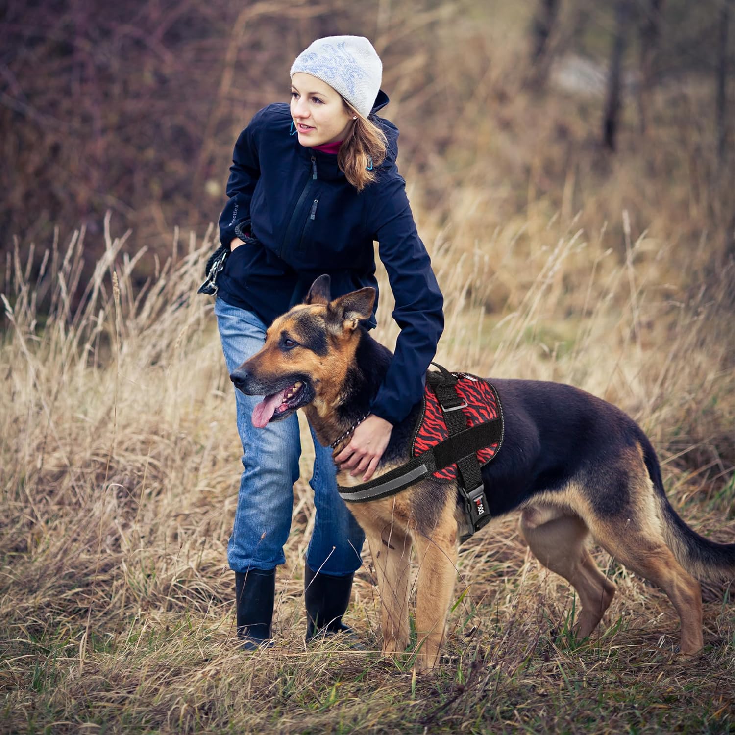 Dogline Dog Harness, Reflective No-Pull Adjustable Vest with Handle for Walking, Training, Breathable, No - Choke Harness for Small, Medium or Large Dogs Room for Patches Zebra Black/Red M 22"-28"