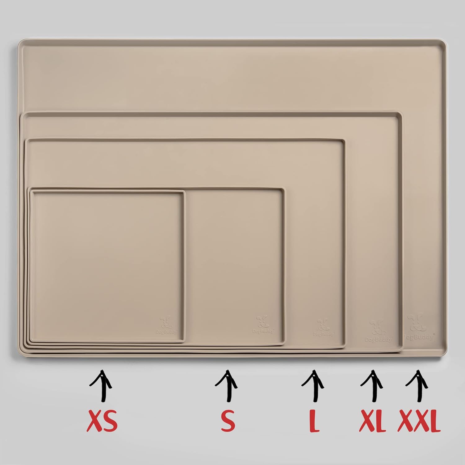 DogBuddy Dog Food Mat – Waterproof Dog Bowl Mat for Food and Water, Silicone Pet Feeding Mats for Floors, Non-Slip Placemat with High Edges for Dogs Bowls, Puppy Essentials (Small: 19"x12", Taupe)