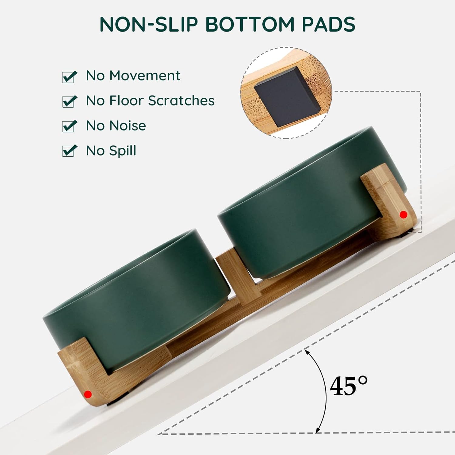 - Natural Wooden Stand:Unique wooden stand can effectively prevent food from spilling and keep the floor clean and tidy. Non-Slip bowl base, making it easy to pick up and put down