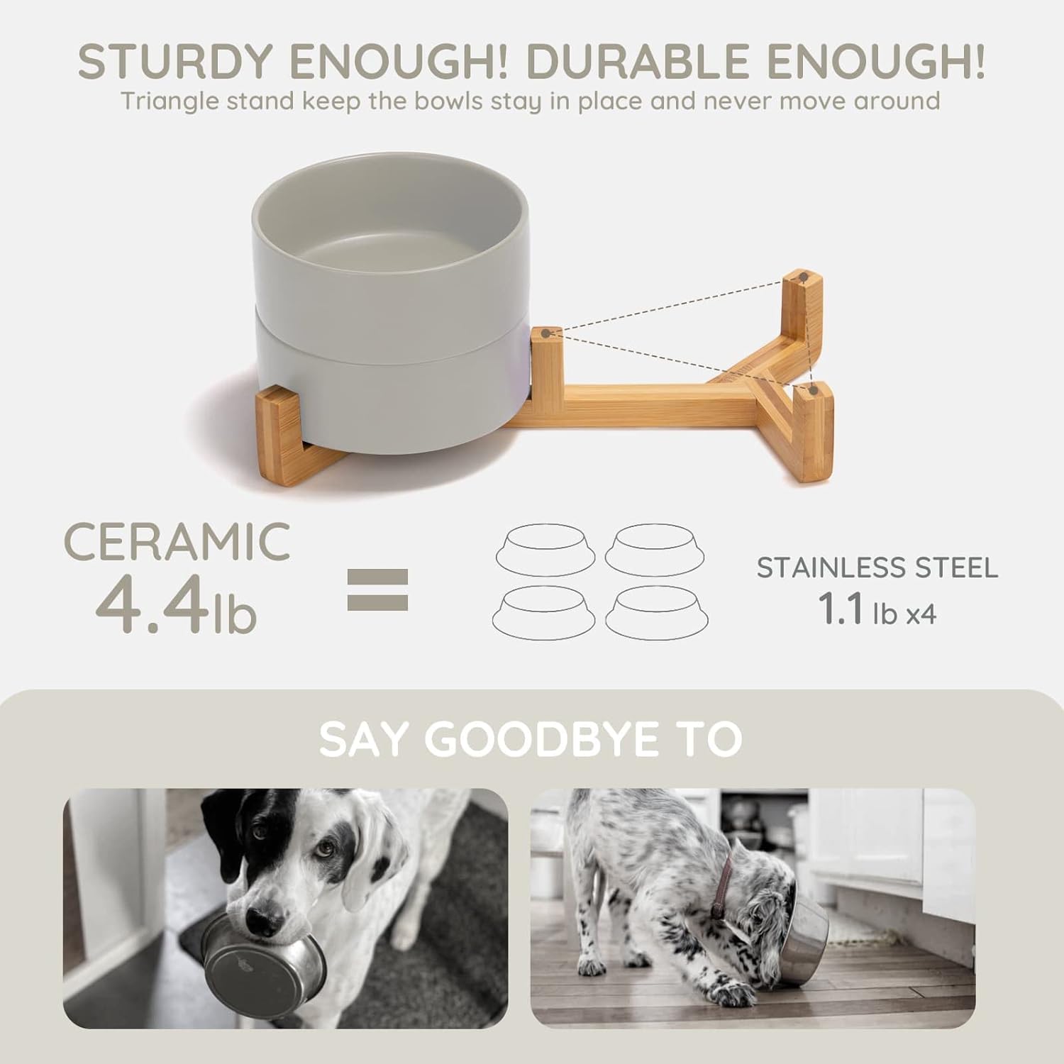 SPUNKYJUNKY Ceramic Dog and Cat Bowl with Wood Stand Non-Slip Matte Glaze Weighted Food Water Set for Cat Medium Dog 28.7 OZ
