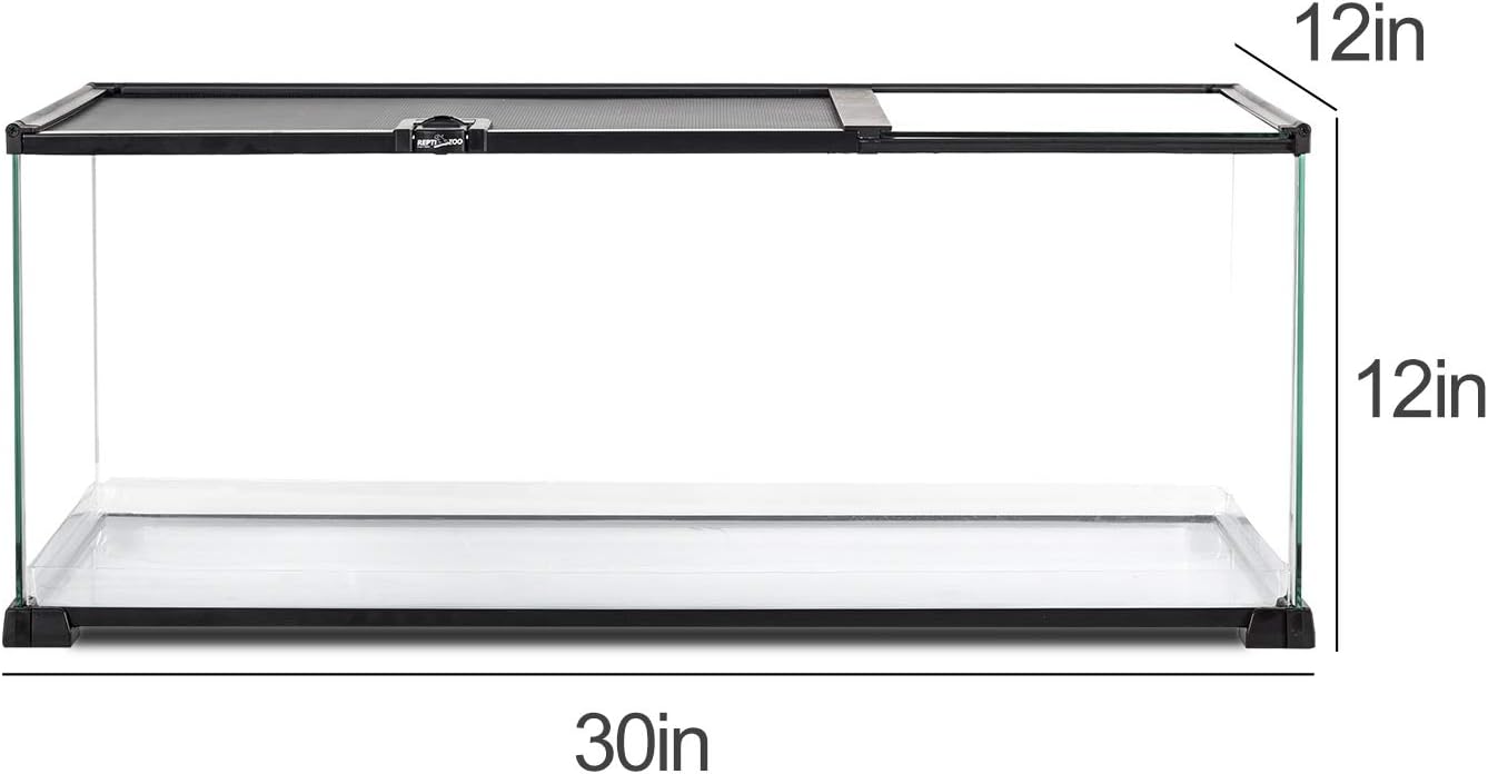 REPTI ZOO 20 Gallon Reptile Glass Terrarium Easy Clean Tank 30" x 12" x 12" Dual Top Sliding Top Cover for Reptile Snake Hamster Hedgehog Small Animals (Knock-Down)