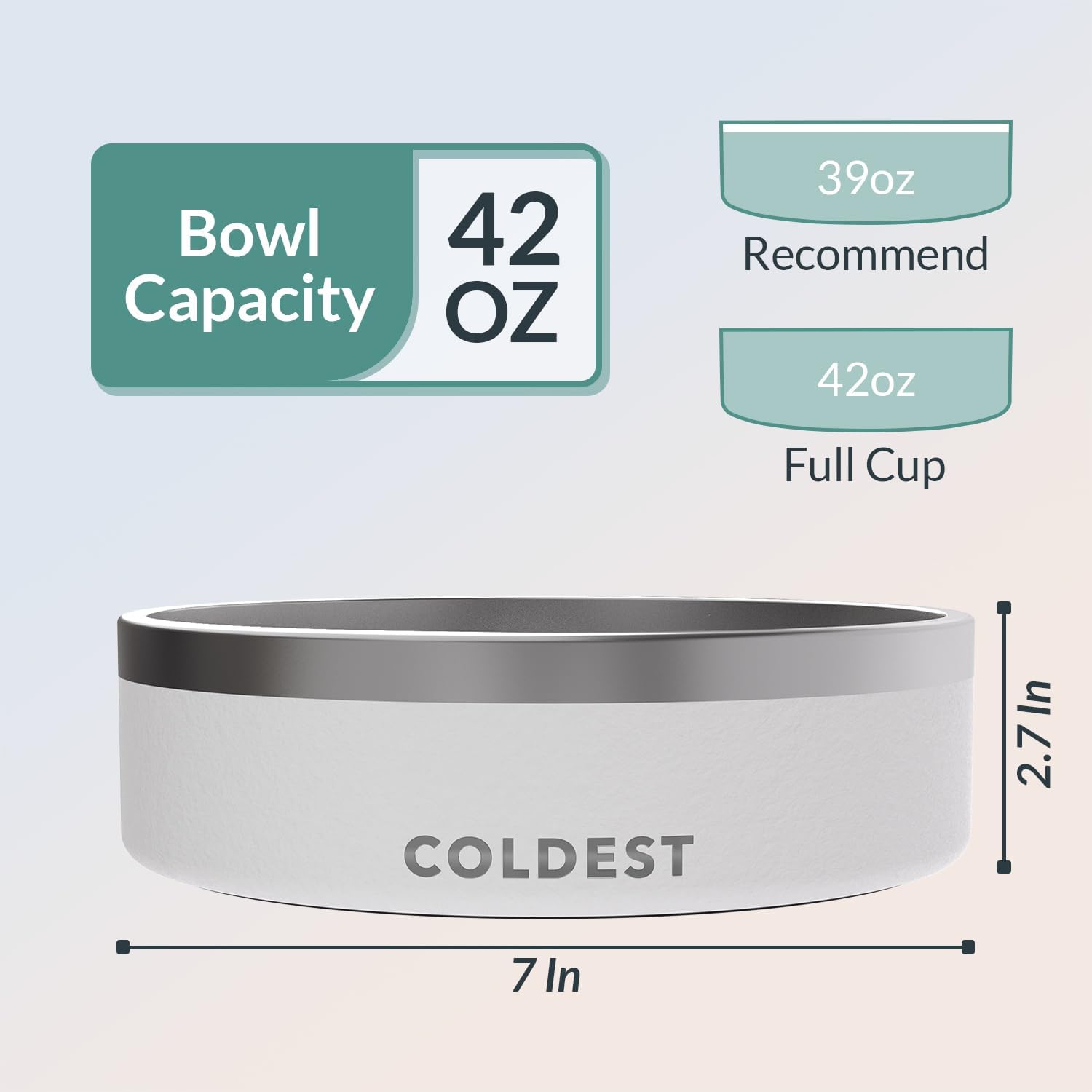 Coldest Dog Bowl - Anti Rust Metal, Non Slip, 3 Layers Insulated Stainless Steel Dog Bowls - Spill Proof & Heavy Duty - Water Bowl for Dogs, Cats & Pets, Dish Washer Safe (42 oz, Epic White)