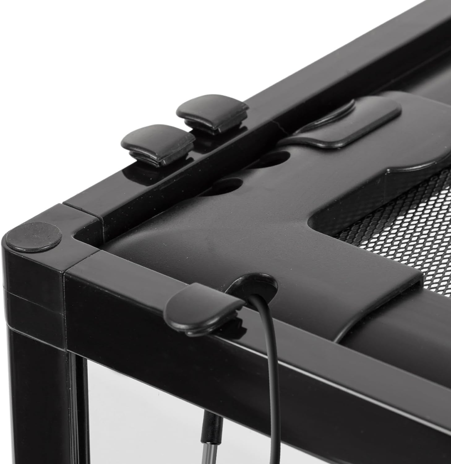 - ăThin Net Wire LidăThe full screen top ventilation with thin mesh wire allows more UVA UVB and infrared heat penetration. Max water level 6.3inch in the water-tight base can hold more water for amphibious pets.
