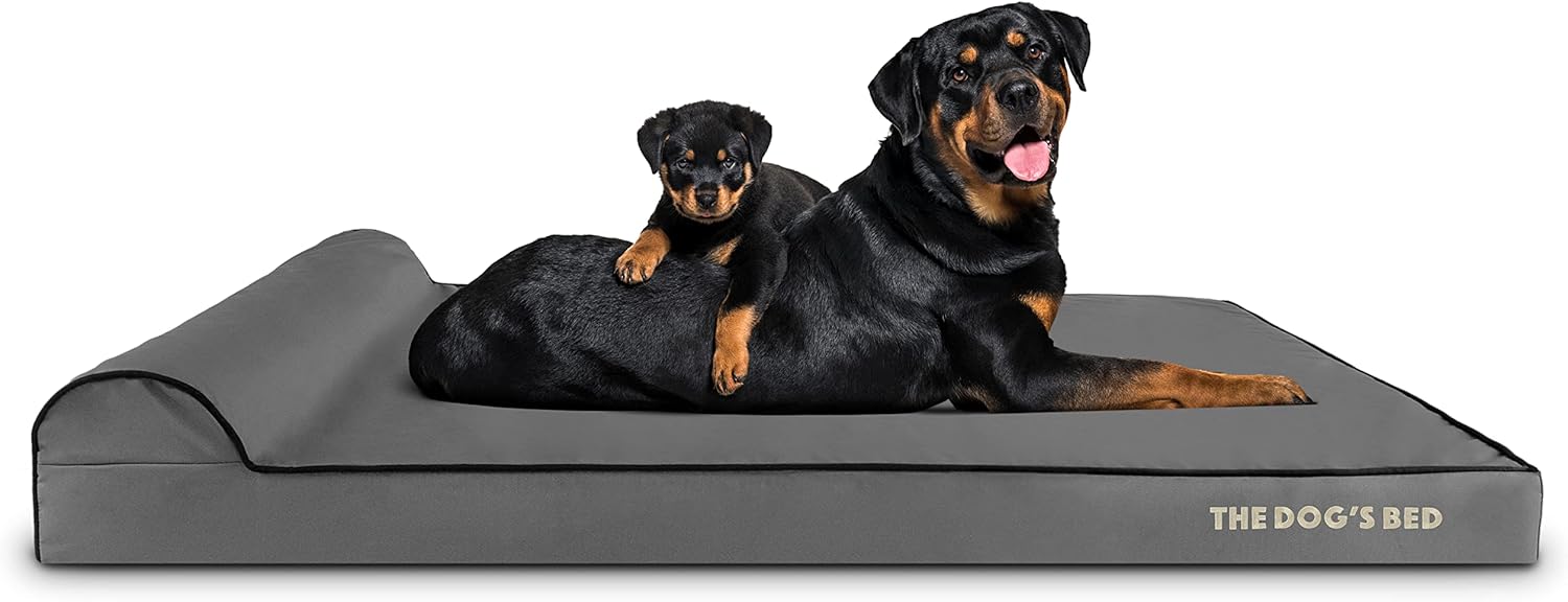 The Dog’s Bed Orthopedic Headrest Dog Bed XXL Grey/Black 54x36, Memory Foam, Pain Relief for Arthritis, Hip & Elbow Dysplasia, Post Surgery, Lameness, Veterinary Approved, Waterproof Washable Cover