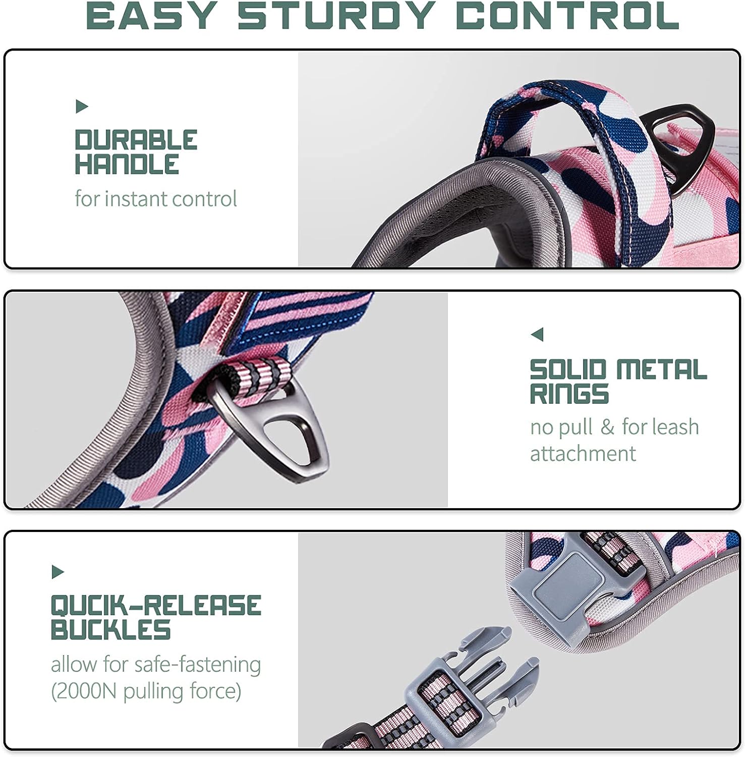 BUMBIN Tactical Dog Harness for Medium Dogs No Pull, Famous TIK Tok No Pull Dog Harness, Fit Smart Reflective Pet Walking Harness for Training, Adjustable Dog Vest Harness with Handle Pink Camo M