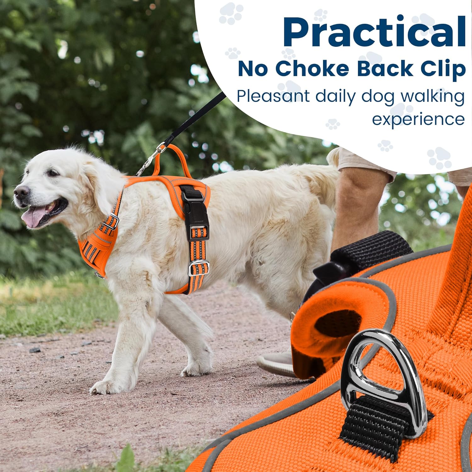 Funfox Dog Harness No Pull, Adjustable Pet Vest Harness, Super Soft Material with Vertical Handle Easy Control, Reflective Night Walking, 2 Leash Clips for Medium Sized Dogs, Orange, M