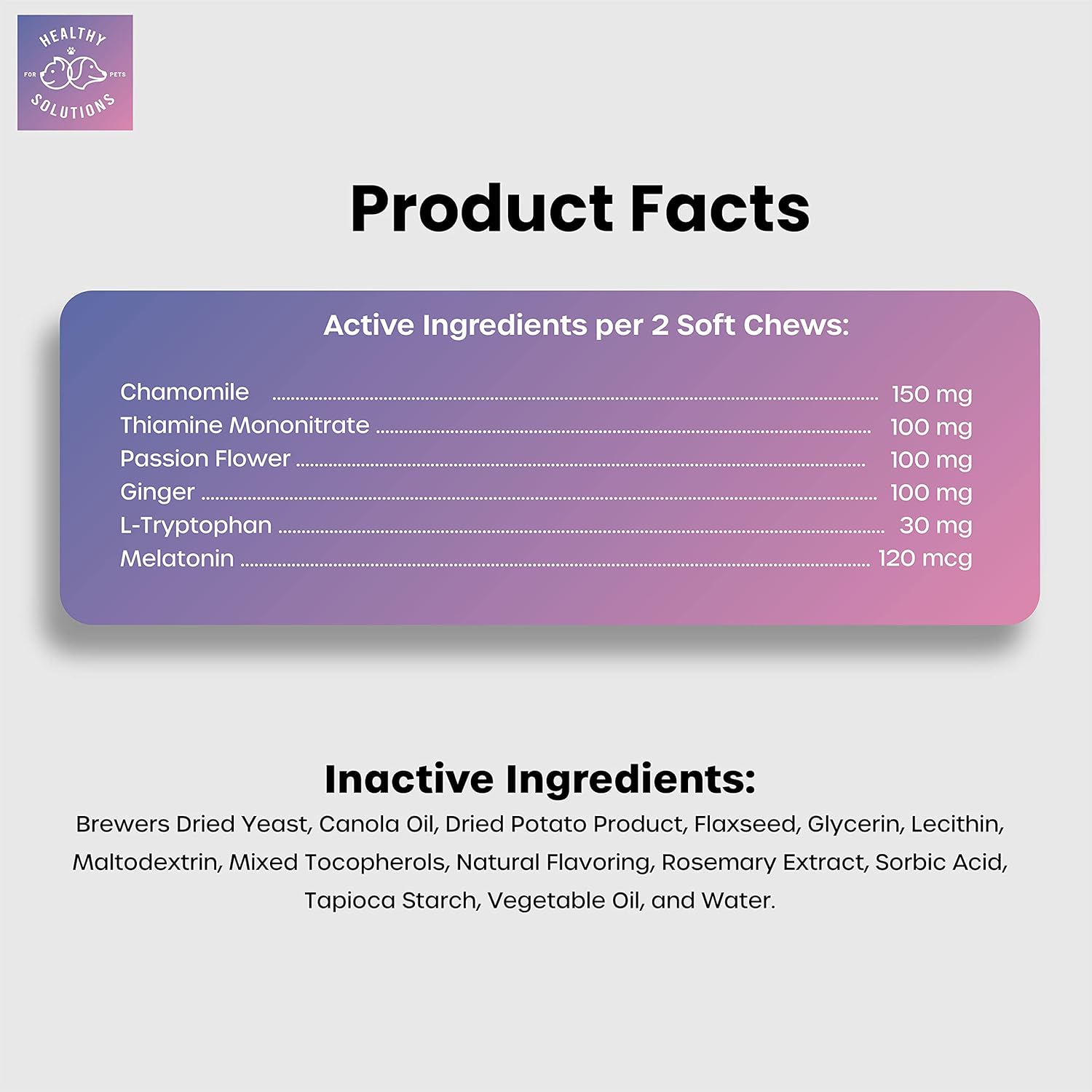- ๐ธ CALMING CHEWS THAT TASTES LIKE A TREAT -- Veterinarian recommended to help reduce stress and tension while promoting rest and relaxation. -- 60 Soft Chews