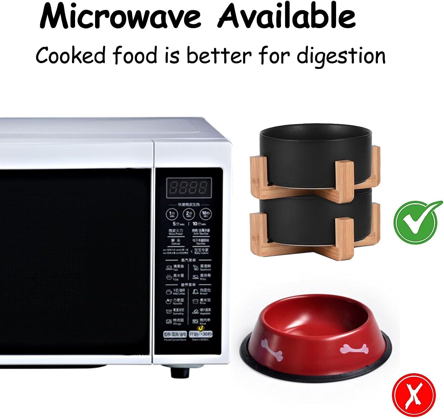 - DISHWASHER MICROWAVE SAFE - Ceramic pet bowls is made of Porcelain Ceramic with wood frame to keep from sliding on the floor. Ceramic cat dog bowls are high temperature ceramic, non-toxic durable.and the cat dog food water bowls conveniently dishwasherable so it can be easily cleaned. No Fuss.