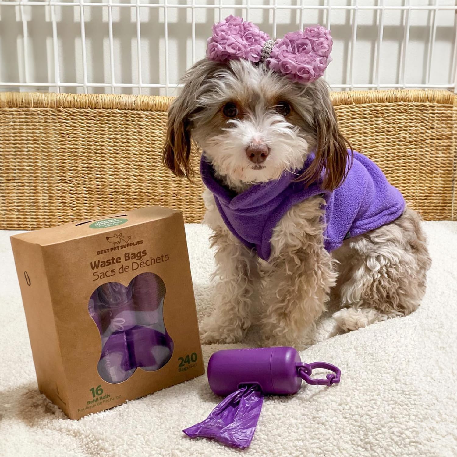 Best Pet Supplies Dog Poop Bags (240 Bags) for Waste Refuse Cleanup, Doggy Roll Replacements for Outdoor Puppy Walking and Travel, Leak Proof and Tear Resistant, Thick Plastic - Purple