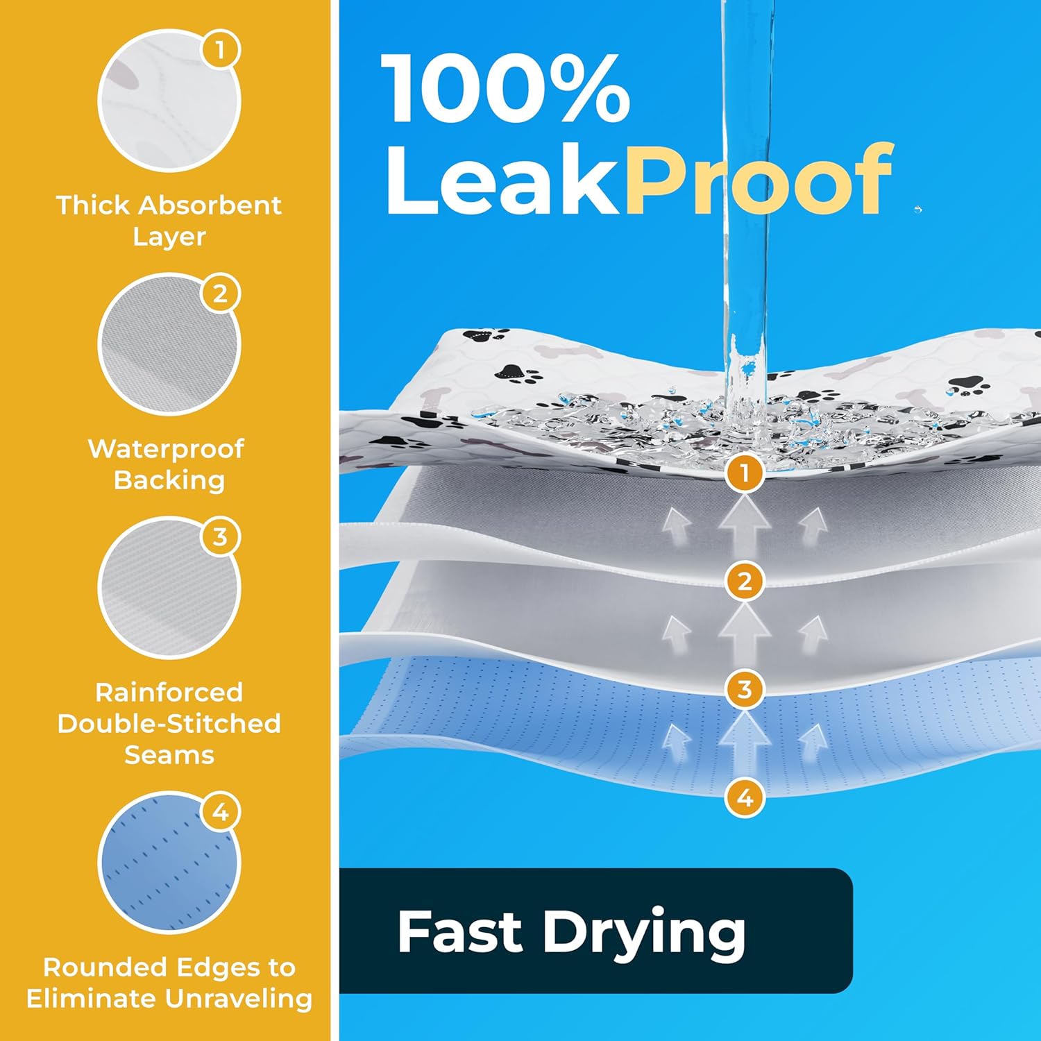 - Multipurpose, Suitable for Various Occasions - These puppy pads are not just for training puppies, but also ideal for senior dogs, cats, and other pets as a bed or crate liner.