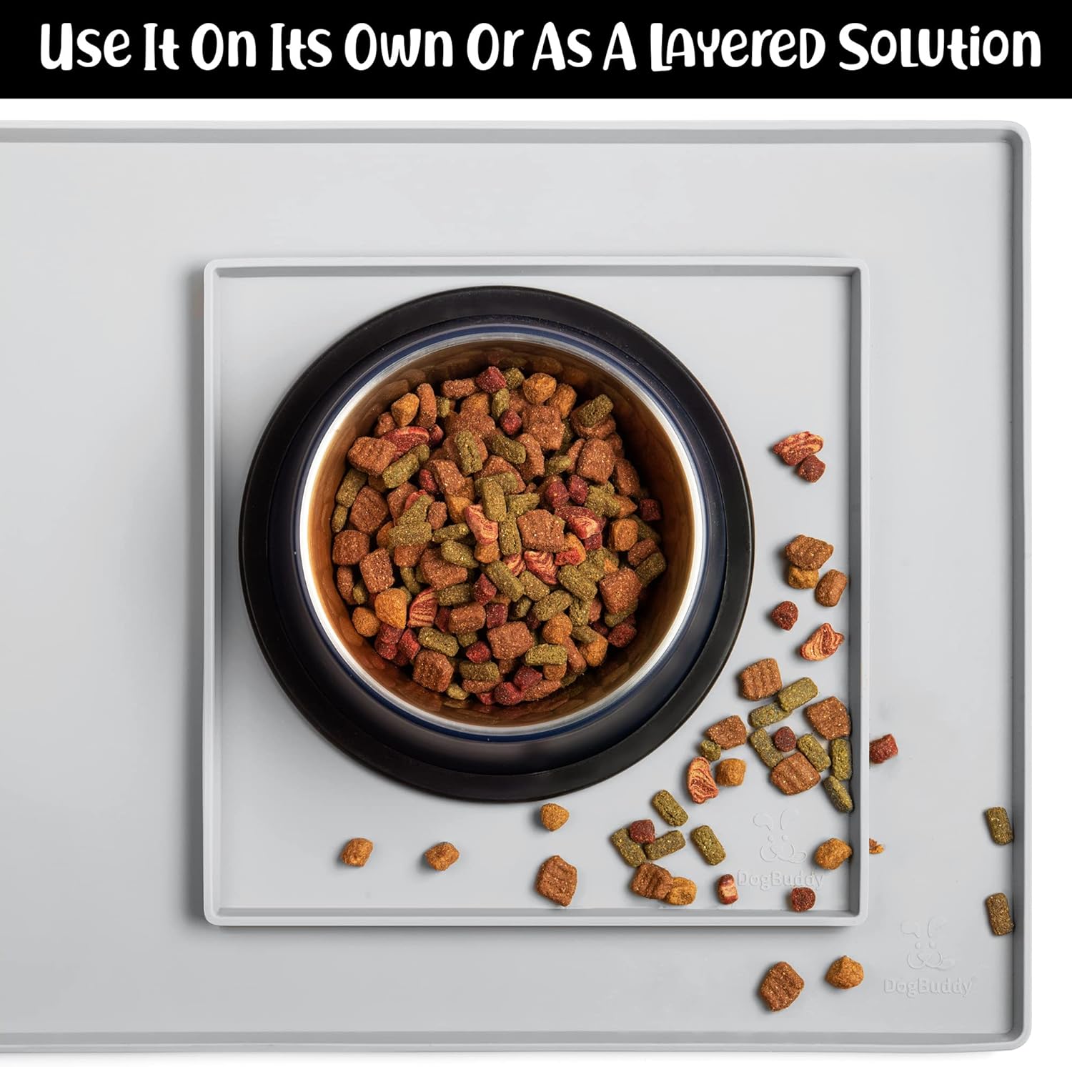 - For All Pets & All Food Bowls: DogBuddy is your pet’s buddy! Our food mat can be used for all house pets – dogs, cats, and other small animals. Use this food mat under dog and cat bowls, water fountain, automatic feeder etc. It is pet supplies must have!